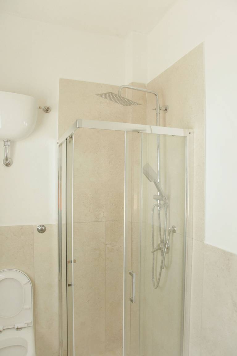 Badezimmer (6 m²): Waschbecken, WC, Bidet, Dusche, Fön, Fliegengitter.