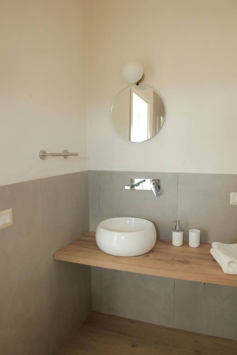 Badezimmer (6 m²): Waschbecken, WC, Bidet, Dusche, Fön, WiFi Internet, Fliegengitter.