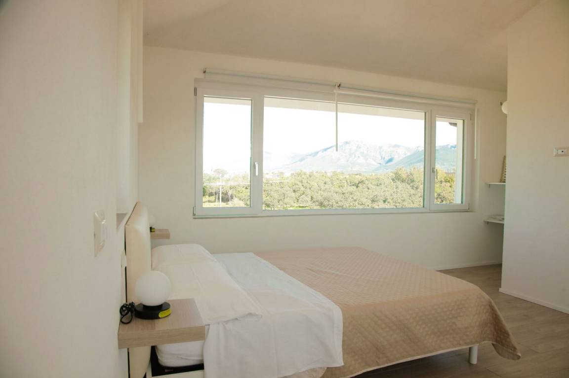 Schlafzimmer mit Bad (20 m²): großes Doppelbett (Breite: 160m, Länge: 200m), WiFi Internet, Klimaanlage, Fliegengitter, TV, Waschbecken, WC, Bidet, Dusche, Fön.
