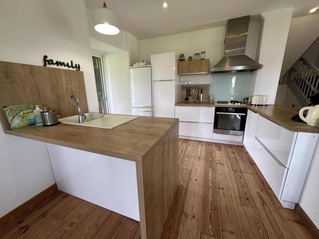 Geschoss geräumiges Wohnzimmer mit ausgestatteter Küche (Kühlschrank mit Gefrierfach, 3 Gasbrenner, Elektroherd, Geschirrspüler, Mikrowelle), offen zum Wohnzimmer und Wohnzimmer mit Fernseher und WLAN-Anschluss,