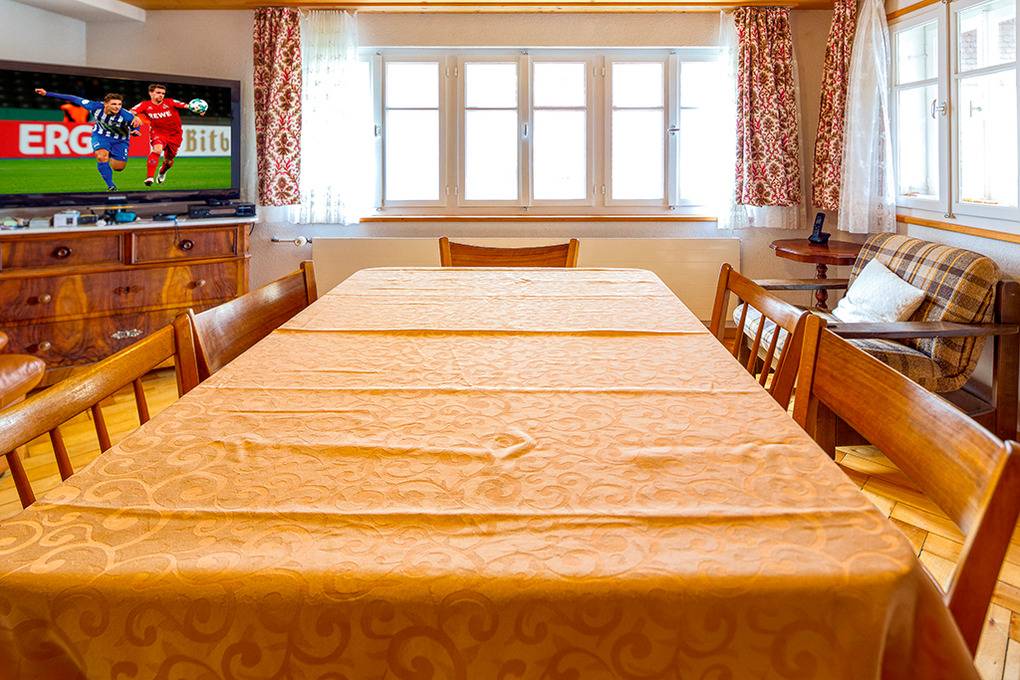 Nebenkosten: Endreinigung 163,50 € (wird bei Buchung erhoben). Kurtaxe im Mietpreis inkl. Bettwäsche stellt der Vermieter 15 SFr/Pers. (Bezahlung vor Ort). Handtücher mitzubringen. Zusätzliche Leistungen: Internet kostenlos über W-Lan. Kaution 200 SFr. Kinder: Babybett/Hochstuhl zusätzlich zur maximalen Personenzahl, jeweils ohne Berechnung (Bestellung). Haustier nicht erlaubt.Räume & Aufteilung