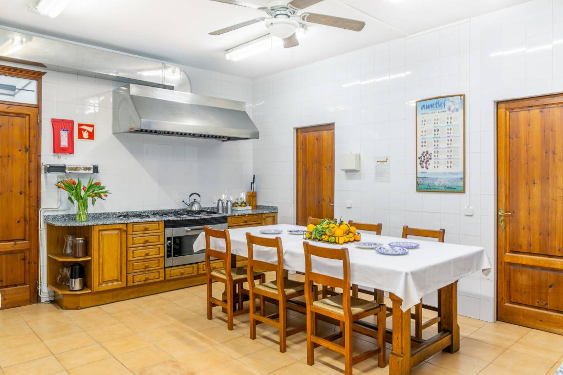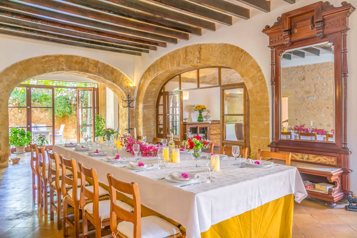 Son Esteve has a large, spacious interior, various lounge areas, one with an open fireplace. You can enjoy dining inside at the main table, or there are other dining options outside.