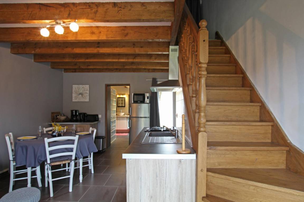 „Ce gite est bien calme, bien pourvu de tout ce qui est nécessaire pour un séjour d'une semaine: Même un couteau à huitres !Il ne nous a rien manqué (sauf un peu plus de papier toilette, mais ce n'était pas un problème, car il y a un hypermarché super U à 2 minutes.) Les propriétaires sont charmants et avaient préparé beaucoup de documents sut tout ce qu'on peut voir et visiter dans la région. Il y a même des copies des randonnées à faire aux alentours...Un seul détail à noter: La chambre est au premier étage, mais les toilettes et la salle de bains sont au rez-de-chaussée. Excellent gite quand même !“