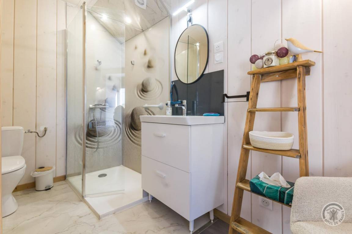 Doppelhaushälfte. Erdgeschoss: Wohnzimmer (Smart-TV, Glasfaser-Internet, Bluetooth-Kopfhörer). Offene Küche (Induktionskochfeld, Dunstabzugshaube, Backofen, Mikrowelle, Kaffeevollautomat, Geschirrspüler, Gefrierfach, Cookeo-Multikocher). Schlafzimmer 1 (zwei Einzelbetten à 80 x 200 cm, die zusammengestellt werden können) mit eigenem Duschbad und WC. Separates WC. Obergeschoss: Galerie mit Arbeitsbereich (Waschmaschine). Schlafzimmer 2 (zwei Einzelbetten à 80 x 200 cm, die zusammengestellt werden können) mit eigenem Duschbad und WC. Außenbereich: Privater, nicht umzäunter Garten. Südwestterrasse. Gartenmöbel. Sonnenschirm. Sonnenliegen. Grill. Privater, nicht umzäunter Parkplatz für 3 Fahrzeuge. Ladestation für Elektrofahrzeuge gegen Gebühr. Angelausrüstung und Brettspiele. Elektrische Heizung inklusive. Bettwäsche auf Anfrage gegen Gebühr. Handtücher werden nicht gestellt. Reinigungsservice optional. Haustierkaution erforderlich.