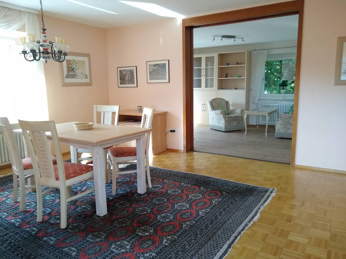 Unsere großzügige Ferienwohnung liegt im geschichtsträchtigen Annweiler mit herrlichem Blick auf die majestätische Burg Trifels und Annweiler mit dem Bindersbacher Tal. Sie befindet sich nur wenige Minuten vom Wald entfernt (ruhige Lage) und dennoch sehr zentrumsnah, um mal eben in der historischen Innenstadt zu bummeln oder eines der vielen Restaurants zu besuchen. Oberhalb des Kurparks gelegen lädt sie zum Wandern, Radfahren oder einfach nur zum gemütlichen Spazieren im Pfälzer Wald ein. Oder aber sie besuchen eines der zahlreichen Weinfeste und kleinen Dörfer entlang der Südlichen Weinstraße. Genießen Sie unsere ca. 90m² große, im 1. OG gelegene Ferienwohnung mit einer seperaten Küche, einem Wohnzimmer, einem Schlafzimmer, Badezimmer, Gäste-WC und einer Terrasse mit Garten. Für die 3. und 4. Person steht ein Bett zur Verfügung. Die 5. und 6. Person können auf der Schlafcouch im Wohnzimmer übernachten. Bettwäsche, Handtücher, W-Lan und Kurtaxe sind inklusive. Von der Terrasse aus können sie den herrlichen Blick auf den Trifels genießen. Der Kurpark liegt nur wenige Gehminuten unterhalb der Ferienwohnung. Gerne können sie Ihre Fahrräder bei uns unterstellen, wir bitten dies aber mit der Buchung mitzuteilen.