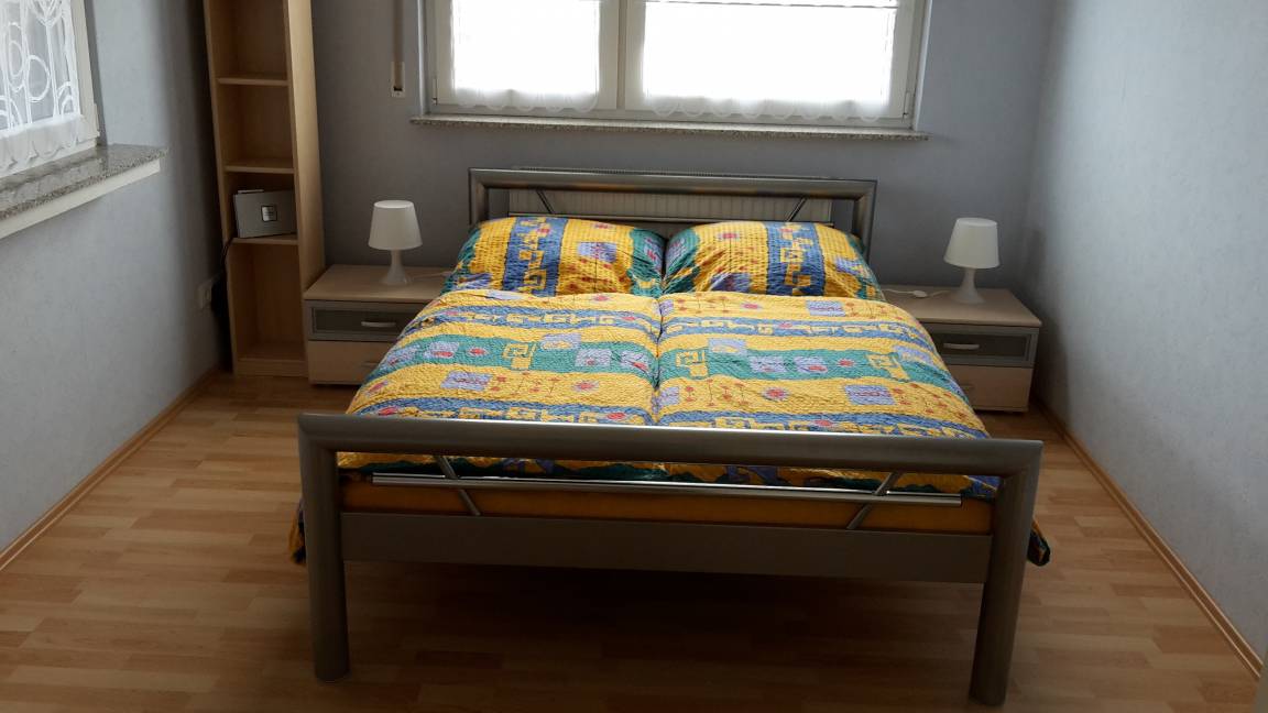 Schlafzimmer: Doppelbett 140 x 200 cm.