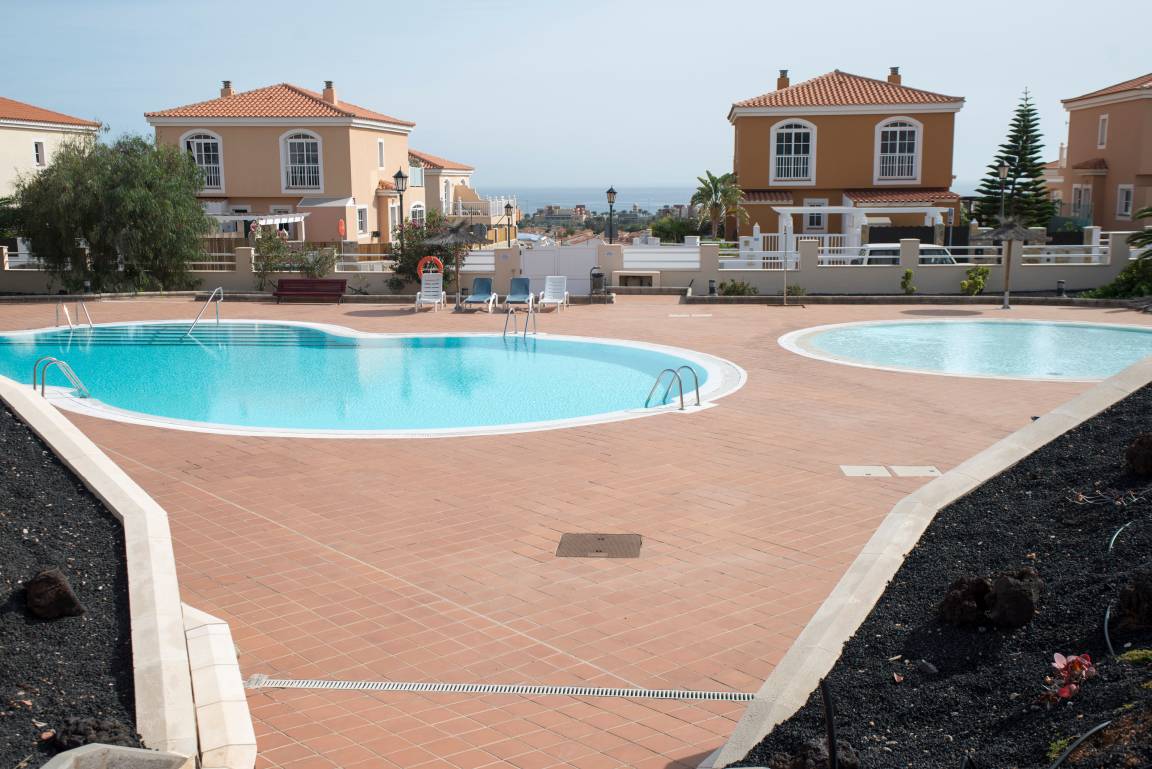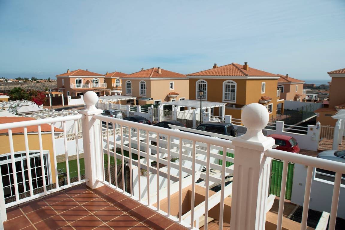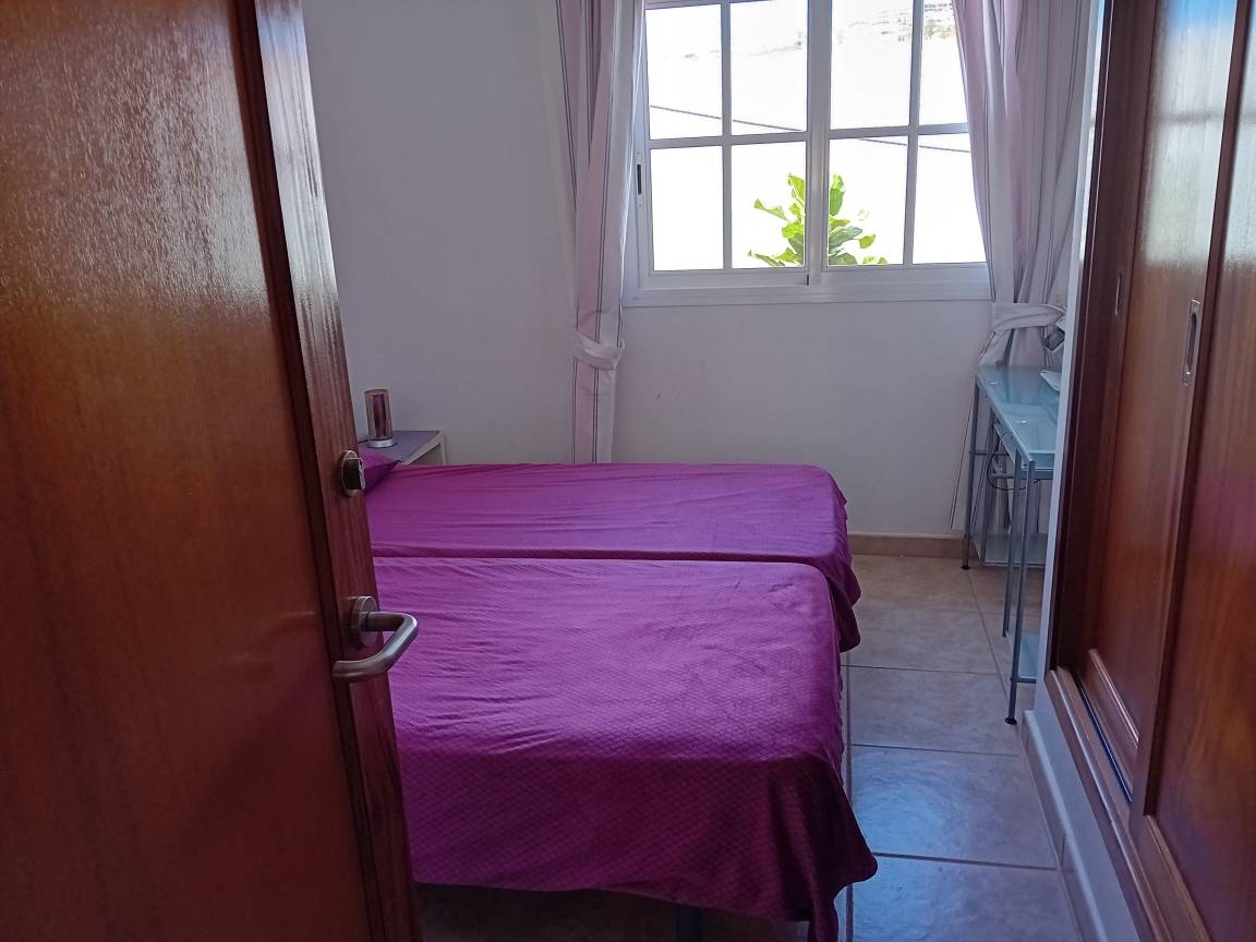 Das Haus bietet in der ersten Etage zwei große Schlafzimmer, jeweils mit Einbaukleiderschränken. In einem Zimmer ist ein Doppelbett, in welchem sich auch ein Babybett befindet, im anderen sind zwei Einzelbetten vorhanden. Das Doppelbettzimmer ist ausgestattet mit zwei Schiebeglastüren zum Balkon, der über einige Häuser der Ferienanlage hinweg Blick auf das Meer bietet. Der Balkon des Einzelbettenzimmers lädt mit Blick auf die vulkanische Landschaft zum Verweilen ein. Das große Bad befindet sich ebenfalls in der ersten Etage, zwischen den beiden Schlafzimmern gelegen. Dieses ist mit Badewanne, Bidet, WC, Waschmaschine, Fön, etc. ausgestattet.