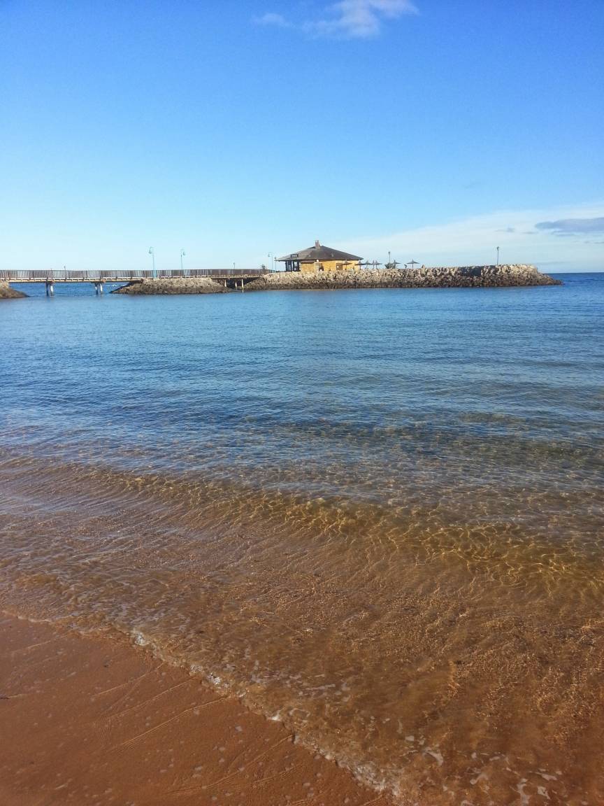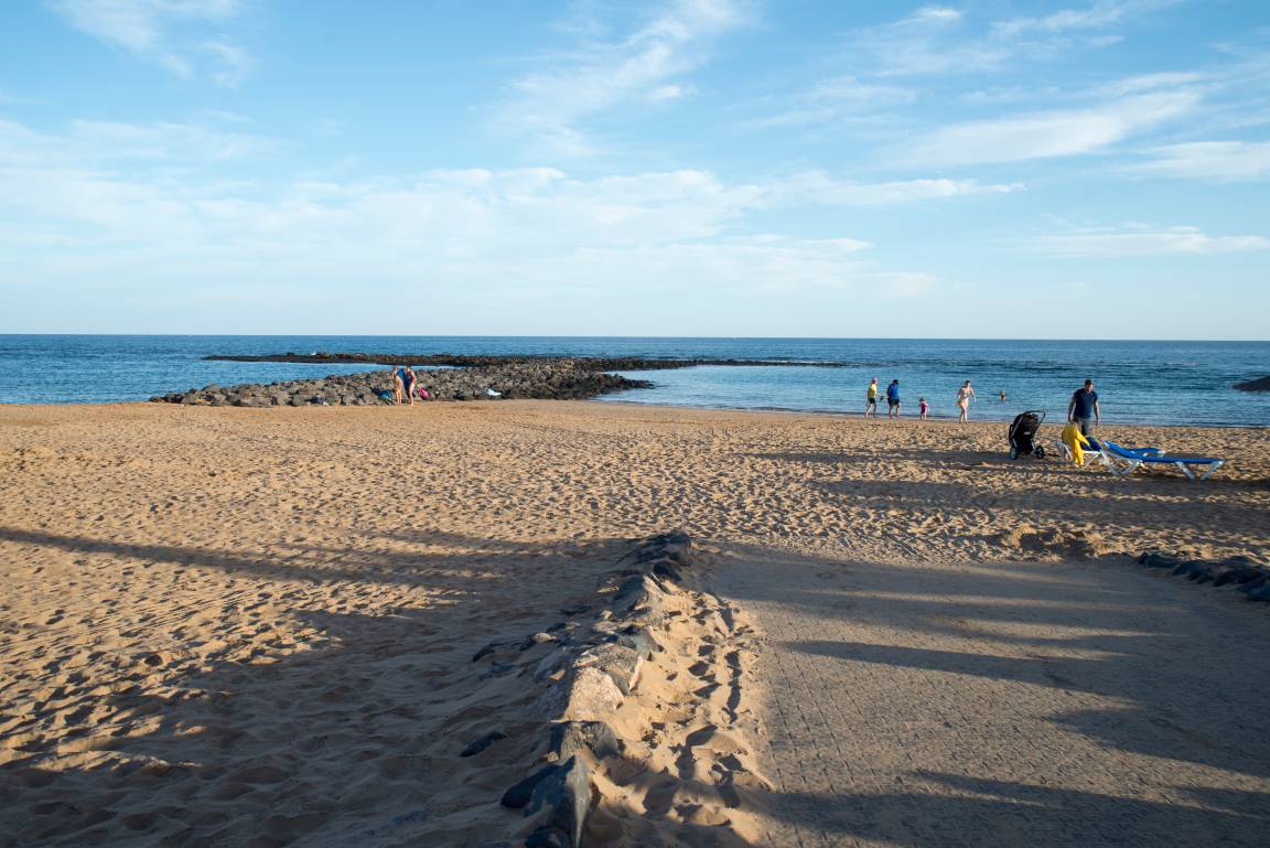 Der Strand ist über einen gepflasterten Gehweg bequem zu erreichen. Es gibt hier mehrere geschützte, von den Wellen abgesicherte Buchten, deshalb auch sehr gut für Kinder geeignet. Für das leibliche Wohl des Gastes ist durch einige Restaurants in der Nähe des Strandes bestens gesorgt, auch befindet sich hier ein großer Supermarkt.