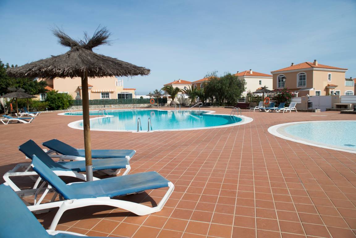 Auf der Terrasse befindet sich ein grosser Esstisch mit 6 Stühlen, ebenso 6 Sonnenliegen mit bequemen Polsterauflagen. Zwei Sonnenschirme sorgen für den gewünschten Schutz. Ein großer und ein kleiner Gemeinschafts-Swimmingpool, ca. 100 m vom Haus entfernt, laden Jung und Alt zum täglichen Vergnügen ein!