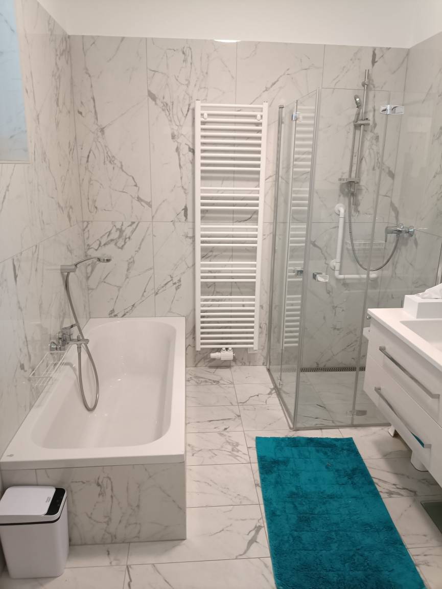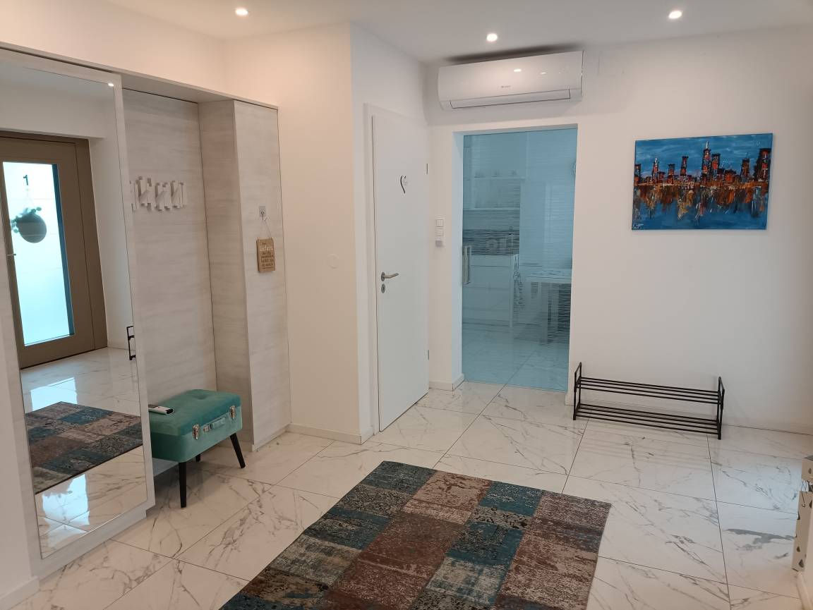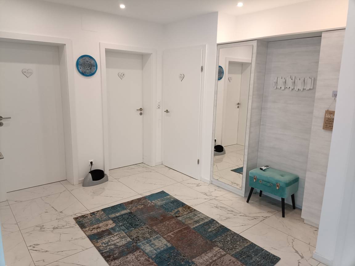 Das geschmackvoll, klimatisierte und moderne Apartment 1 hat 80 m² Wohnfläche. Das Wohnzimmer verfügt über eine stylische, ausziehbare Wohnzimmergarnitur und bietet Ihnen dadurch die Möglichkeit noch 2 Personen mit zu nehmen. Smart TV's sind natürlich im Wohnzimmer und Schlafzimmer vorhanden. Die vollausgestattete Küche ladet sie zum Zubereiten eines ausgiebigen Frühstücks oder zum Kochen von gutem Essen ein.