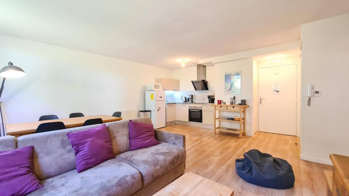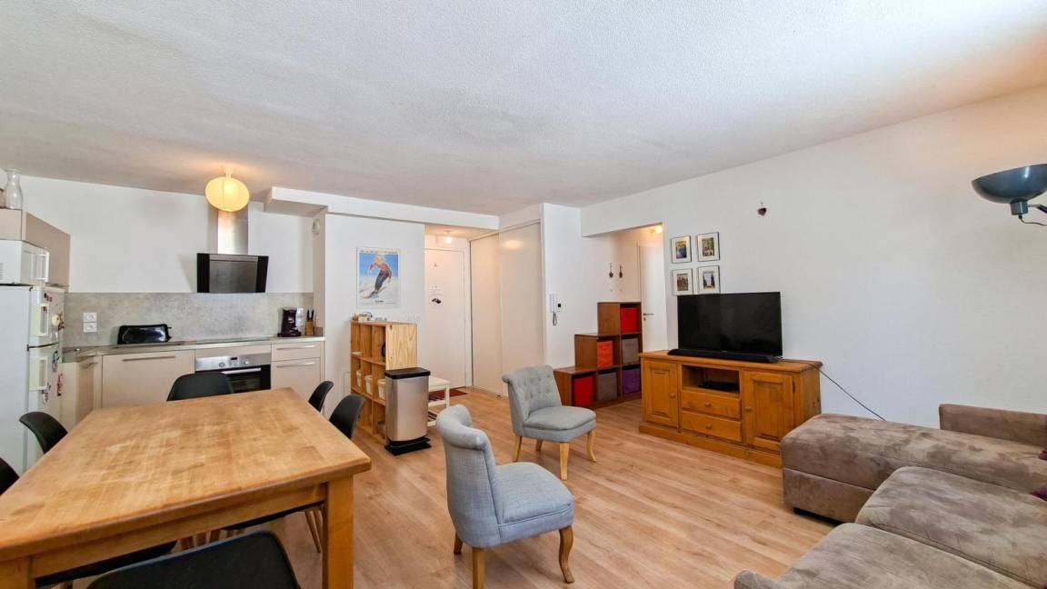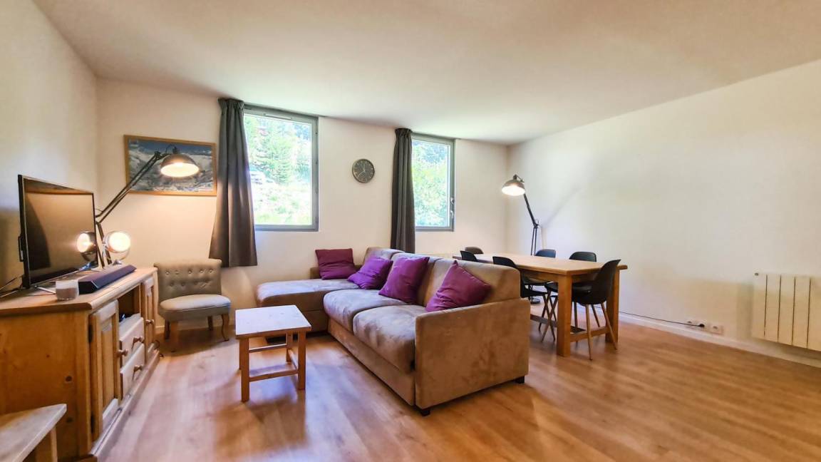 Fläche von ungefähr 60 m². 3te Etage. Orientierung : Nord. Blick berg. Wohnzimmer mit Klappschlafcouch (140*190). Schlafzimmer mit Doppelbett (140). Schlafzimmer mit 2 Stockbetten (80). Küche mit Backofen, Geschirrspülmaschine, Glaskeramikkochfelder, Kühlschrank. Badezimmer mit Badewanne, Waschmaschine, Wäschetrockner. separates WC. Waschräume mit Dusche. Die oberen Betten sind nicht für Kinder unter 6 Jahren geeignet.