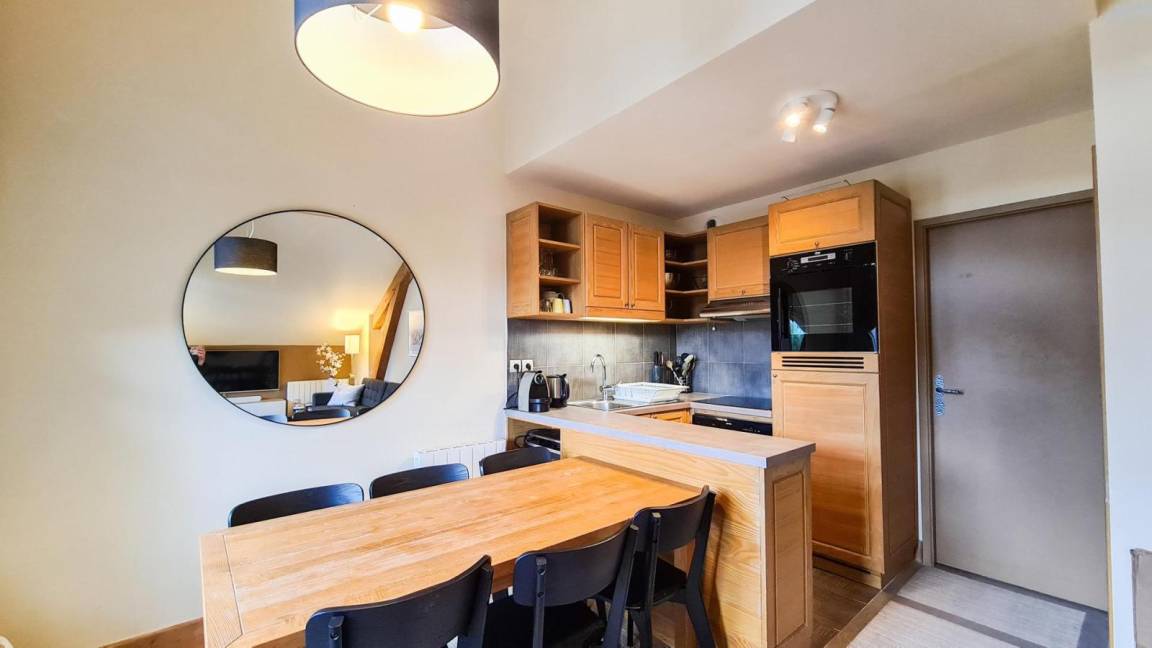 Die Residenz Les Terrasses d'Eos mit Aufzug befindet sich im Viertel Flaine Mont Soleil. Sie ist ideal am Fuße der Wanderwege und 400 m von den Geschäften entfernt. Zu Ihrer Verfügung: beheiztes Freibad, Whirlpool und Fitnessbereich. Fläche von ungefähr 53 m². 5te Etage. Orientierung : Süd. Blick skipisten. Wohnzimmer mit Klappschlafcouch, Kamin, (Blue Ray), . Schlafzimmer mit Doppelbett (160*200), . Schlafzimmer mit Doppelbett (160*200). Kochnische mit Backofen, Geschirrspülmaschine. Badezimmer mit Badewanne, WC. Waschräume mit Dusche, WC. Balkon. wifi.