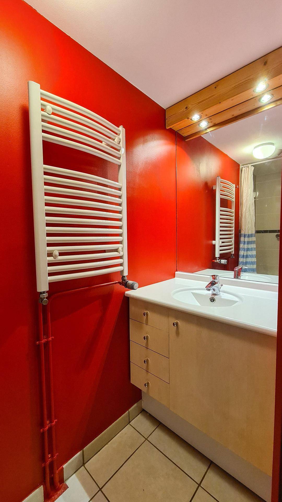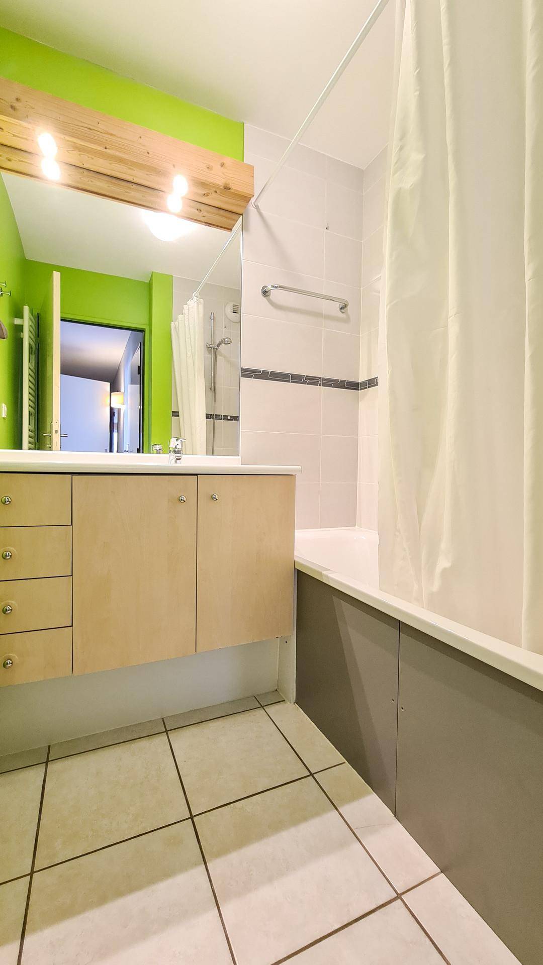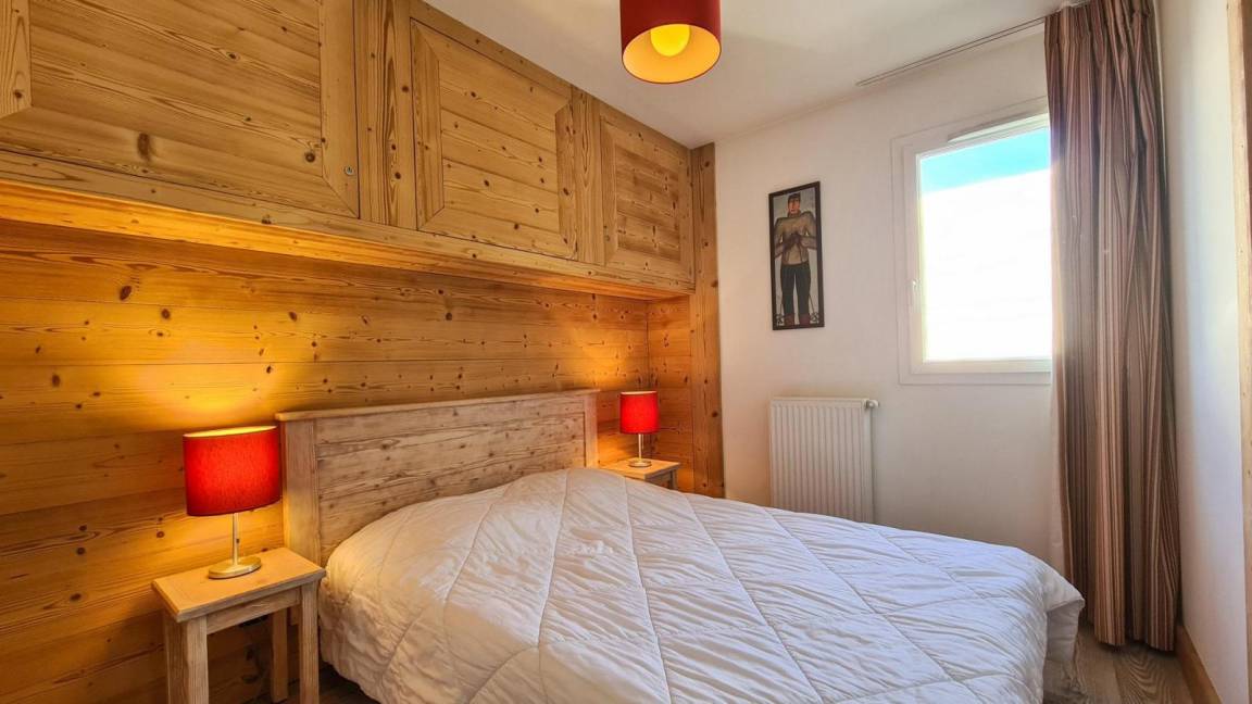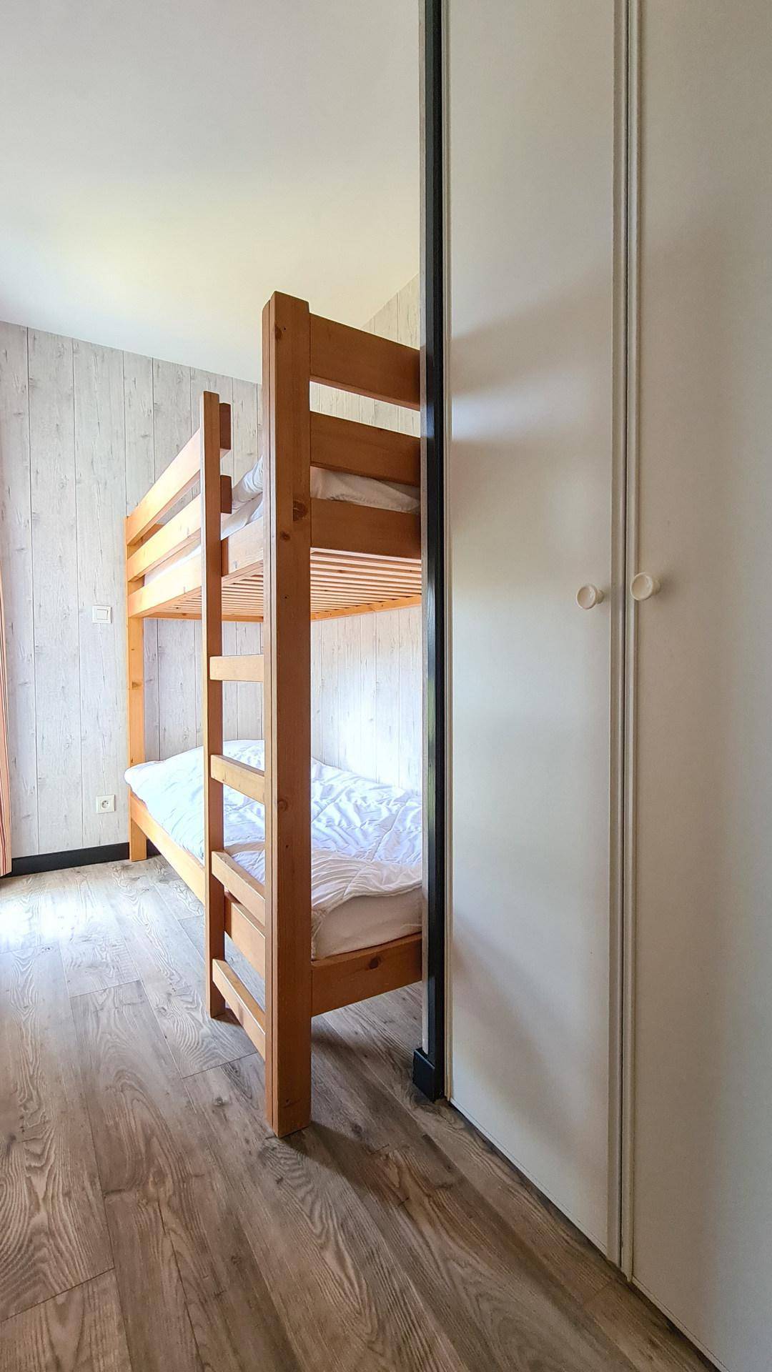 Fläche von ungefähr 60 m². 3te Etage. Orientierung : Süd. Wohnzimmer mit einfache Klappschlafcouch (1 place), 2 Ausziehbetten (80). Schlafzimmer mit Doppelbett (140*190). Schlafzimmer mit 2 Einzelbetten (80*200). offener Schlafbereich mit 2 Stockbetten (80). Kochnische mit Multifunktions-Backofen, Geschirrspülmaschine, Glaskeramikkochfelder, Kühlschrank. Badezimmer mit Badewanne. Waschräume mit Dusche. 2 separate WCs. Balkon. Die oberen Betten sind nicht für Kinder unter 6 Jahren geeignet.