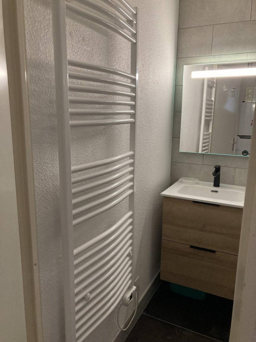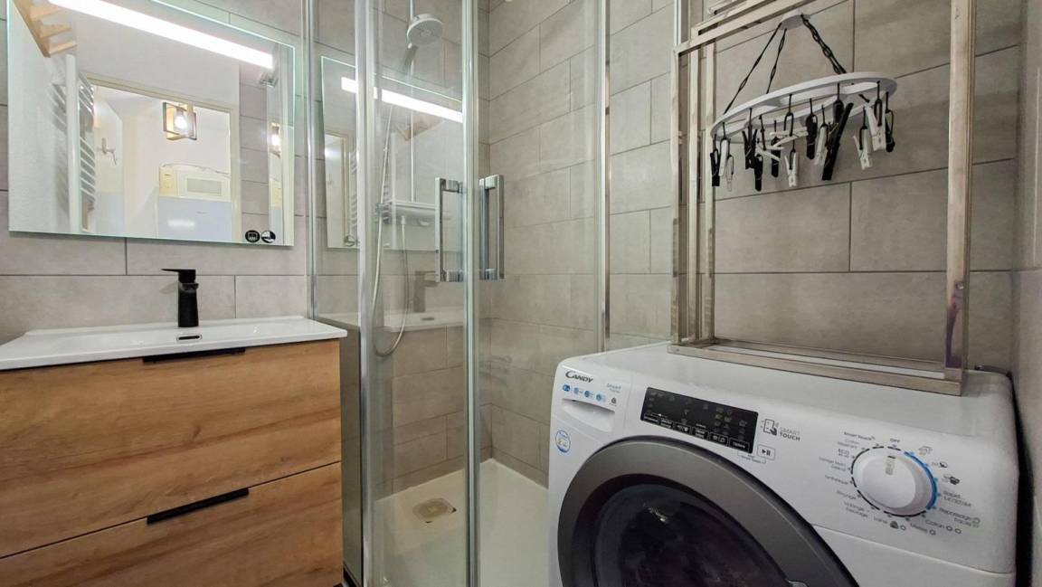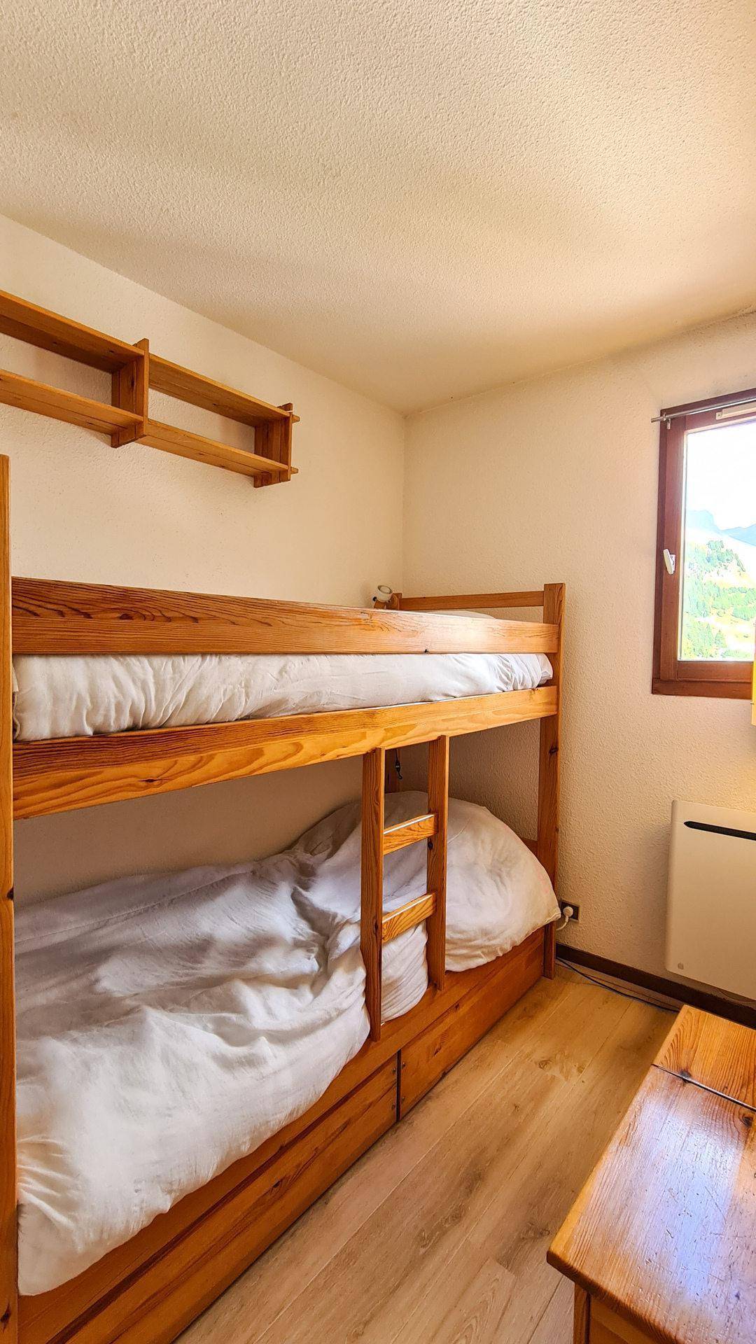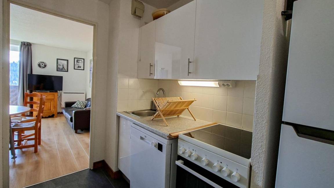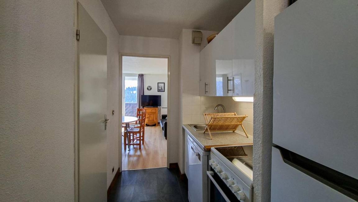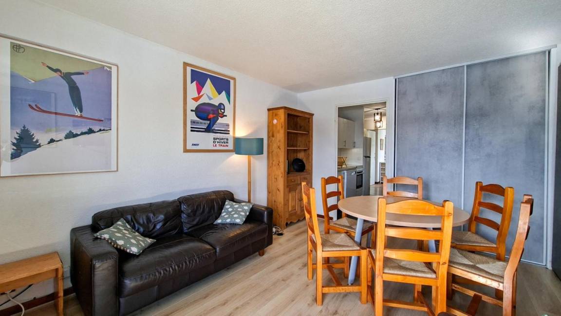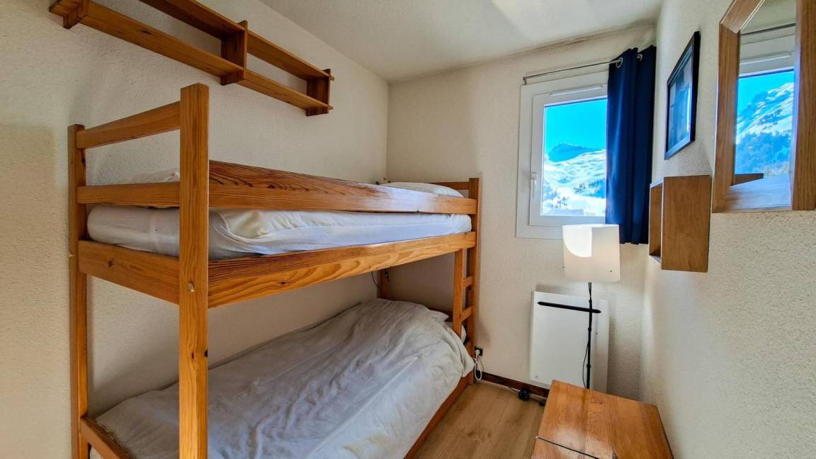 Fläche von ungefähr 48 m². 3te Etage. Orientierung : Süd. Wohnzimmer mit Sofa. Schlafzimmer mit Doppelbett (140). Schlafzimmer mit 2 Einzelbetten (80). offener Schlafbereich mit 2 Stockbetten (80). Küche mit Geschirrspülmaschine, Mikrowellenherd. Kochnische mit Backofen, Geschirrspülmaschine, Mikrowellenherd, 2 Glaskeramikkochfelder, Kühl-Gefrier-Kombination. separates WC. Badezimmer mit Badewanne. Balkon mit Gartentisch und -stühle. Die oberen Betten sind nicht für Kinder unter 6 Jahren geeignet.