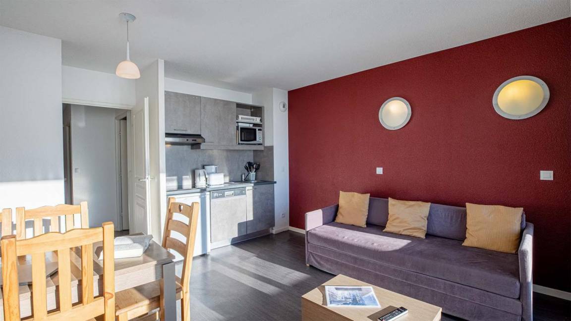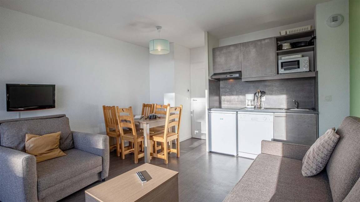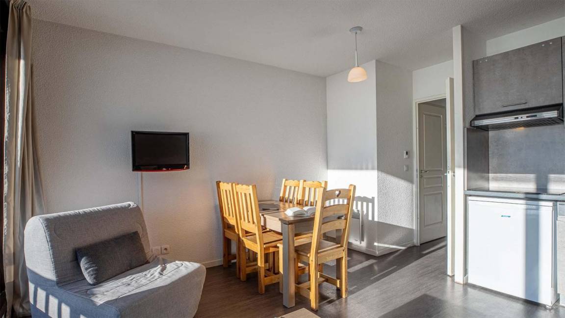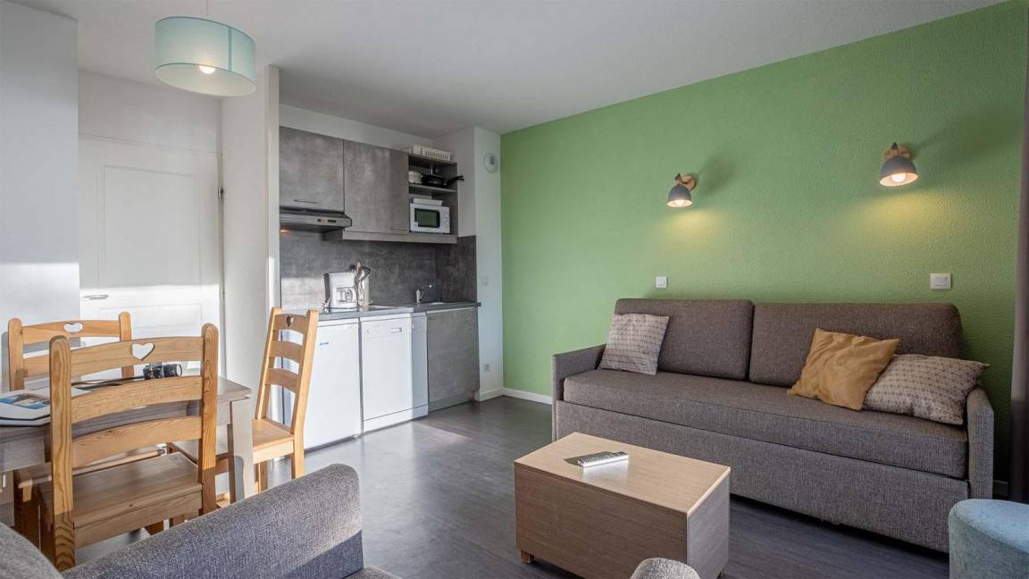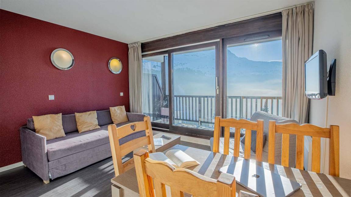 Die Residenz Les Terrasses de Veret*** (mit Aufzug) befindet sich in Flaine-Forêt in einer ruhigen Umgebung in einer Höhe von 1700 Metern. Sie steht in der Nähe des Zentrums der Station und der Geschäfte und ganz in der Nähe der Gondelbahn Grand Vans (Abfahrt und Rückkehr Skiern an den Füssen).Das Dorf befindet sich in Hochsavoyen zwischen Genf und dem Montblanc. Es gehört zu den großten verbundenen Skigebiete in Frankreich. Das Skigebiet in Flaine "Le Grand Massif" bietet 265 km Piste, die miteinander dank der Verbindungen zwischen den Stationen Flaine, Samoëns, Morillon, Les Carroz und Sixt-Fer-à-Cheval verbunden sind. Fläche von ungefähr 32-35 m². Wohnzimmer mit Ausziehschlafcouch für 2 Personen oder Klappschlafcouch, ausklappbarer Schlafsessel. Schlafzimmer mit 2 Einzelbetten oder Doppelbett. Kochnische mit Geschirrspülmaschine, Mikrowellenherd, 2 Herdplatten, Kühlschrank. Badezimmer mit Badewanne. WC. Balkon.