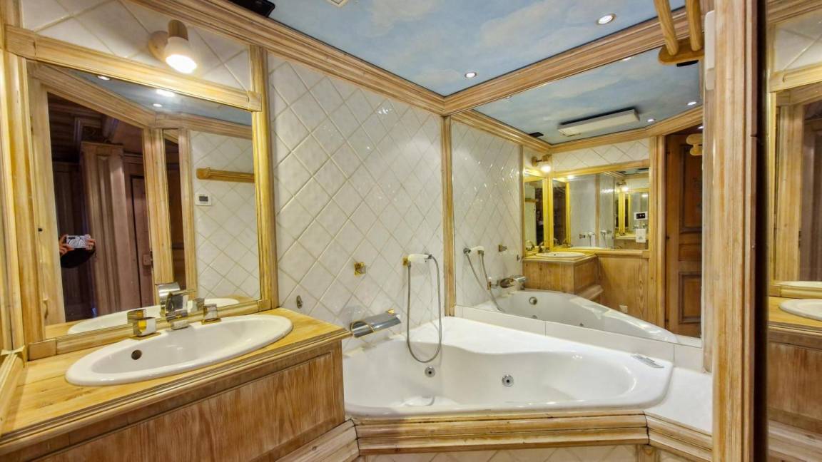 Fläche von ungefähr 100 m². 6te Etage. Orientierung : Süd-West. Wohnzimmer mit 2 Schlafsofa (120*190), , TV. Schlafzimmer mit Doppelbett (140). Schlafzimmer mit Doppelbett (160), TV. offener Schlafbereich mit 2 Stockbetten. mit Backofen, Waschmaschine, Geschirrspülmaschine, Mikrowellenherd, 2 Glaskeramikkochfelder. Badezimmer. Waschräume mit WC. WC. Terrasse. Sauna. Die oberen Betten sind nicht für Kinder unter 6 Jahren geeignet.