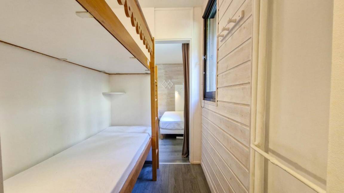 Fläche von ungefähr 53 m². 2te Etage. Orientierung : Süd. Wohnzimmer mit Ausziehschlafcouch für 2 Personen, , TV. Schlafzimmer mit Doppelbett. Schlafzimmer mit 2 Einzelbetten. offener Schlafbereich mit 2 Stockbetten. Küche mit Kaffeemaschine, Backofen, , , Geschirrspülmaschine, Mikrowellenherd, 2 Glaskeramikkochfelder, Kühl-Gefrier-Kombination. Badezimmer mit WC. Waschräume mit WC. Balkon. Die oberen Betten sind nicht für Kinder unter 6 Jahren geeignet.