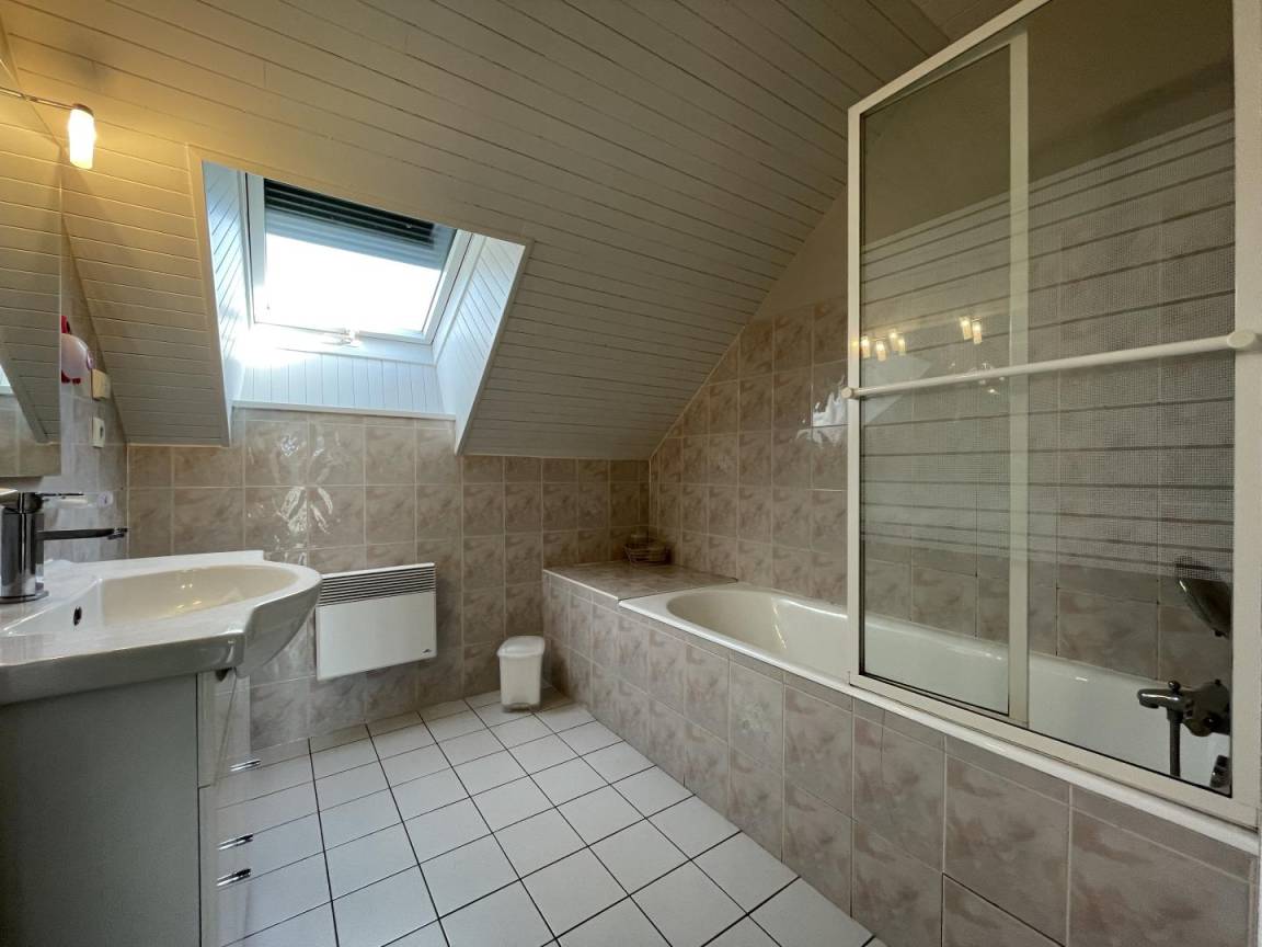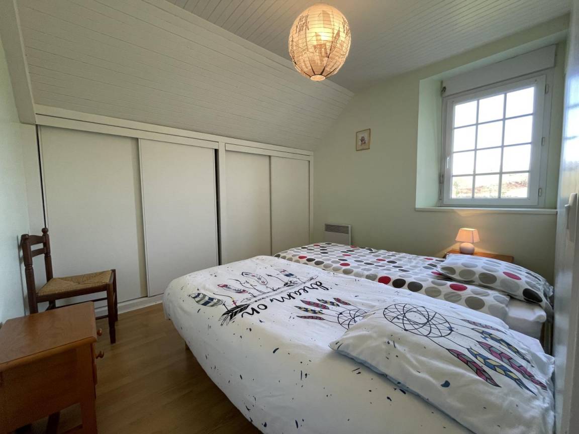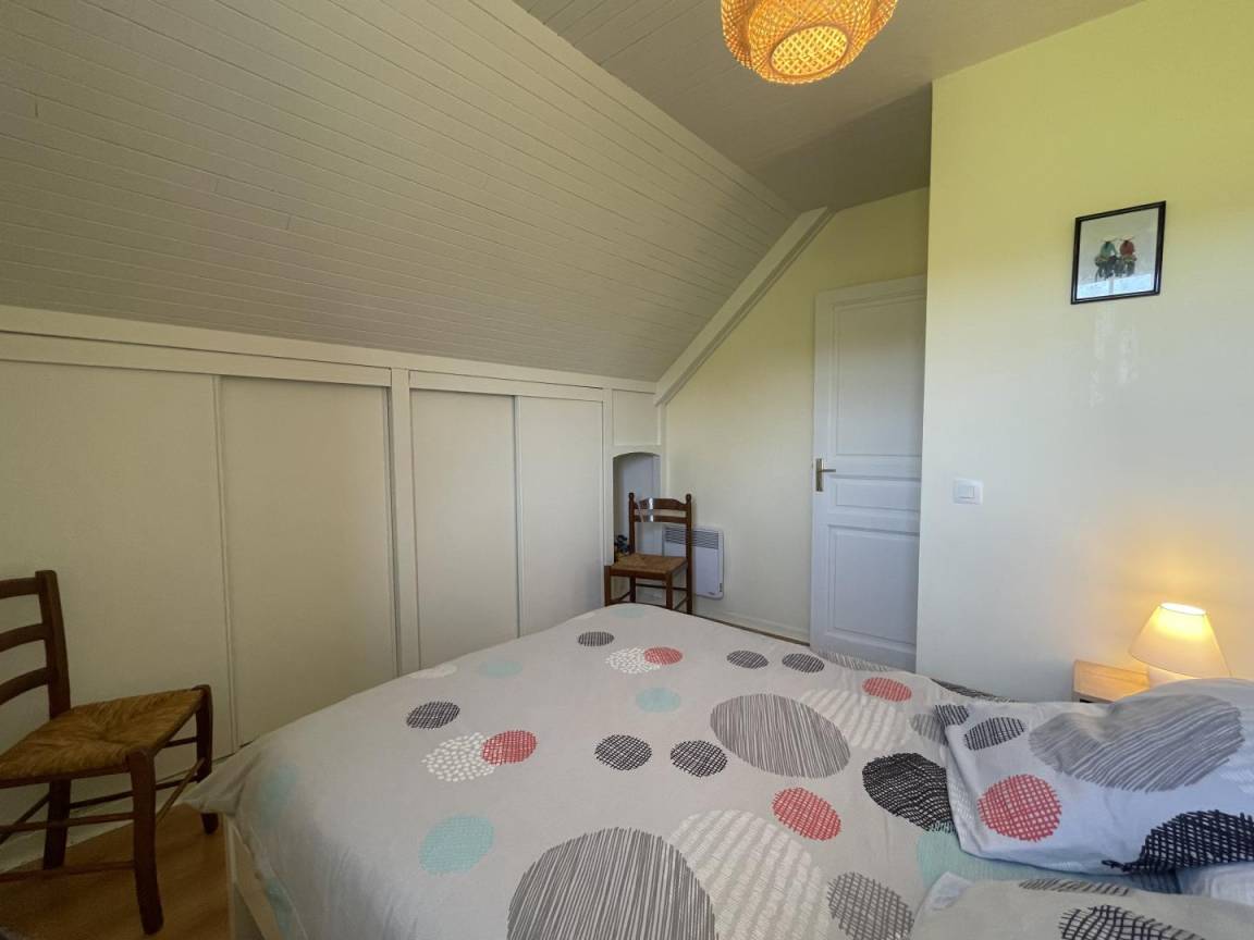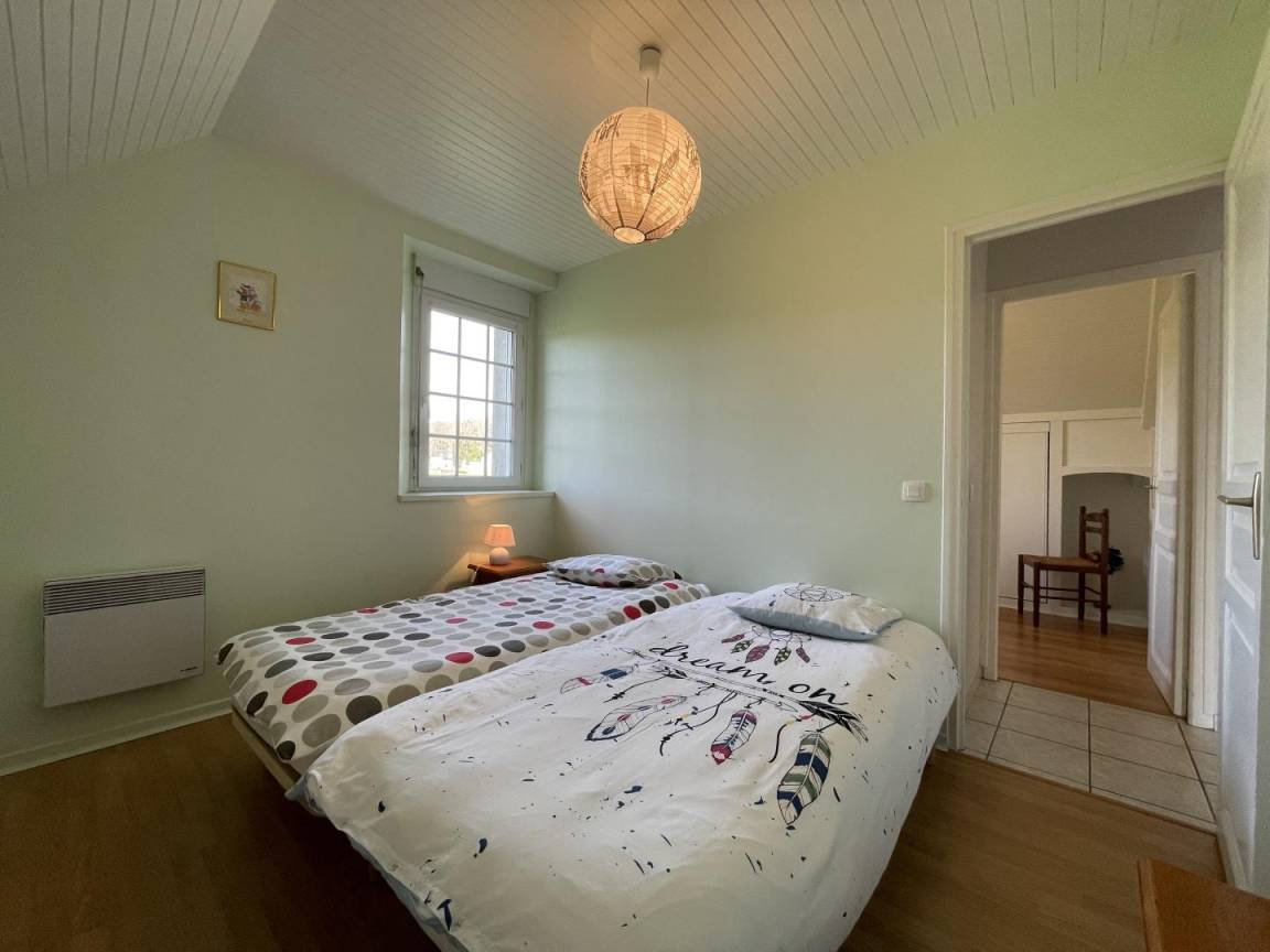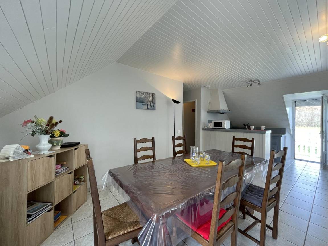 Dachgeschoss: Wohnzimmer, Sitzecke (TV), Küchenbereich (Mikrowelle, Backofen, Geschirrspüler, Kühlschrank mit Gefrierfach), 3 Schlafzimmer (2 Doppelbetten, 2 Einzelbetten), Badezimmer, WC. Möglichkeit, Bettwäsche zu mieten.