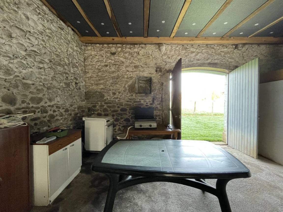 Dieser Raum öffnet sich auf der Rückseite zum umzäunten Garten, Gartenmöbeln, Plancha.