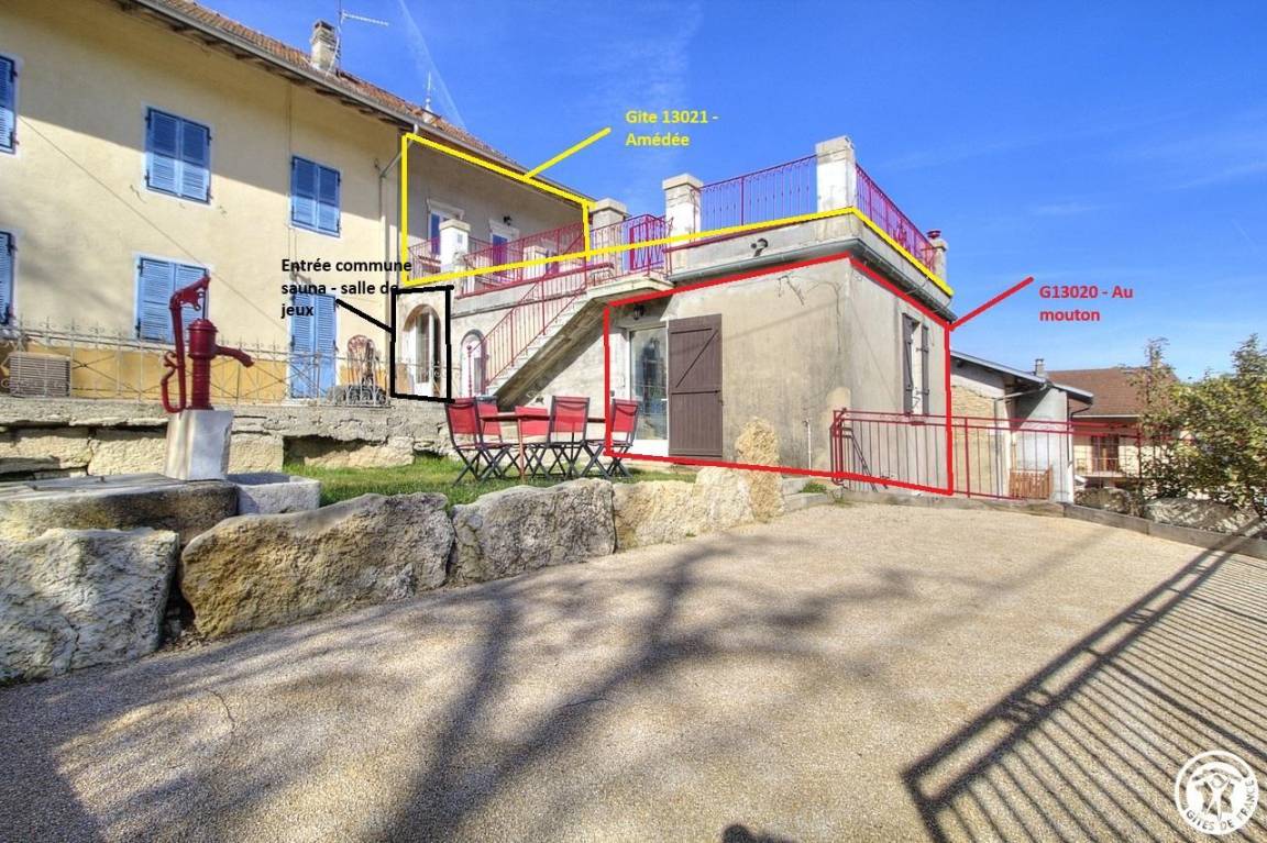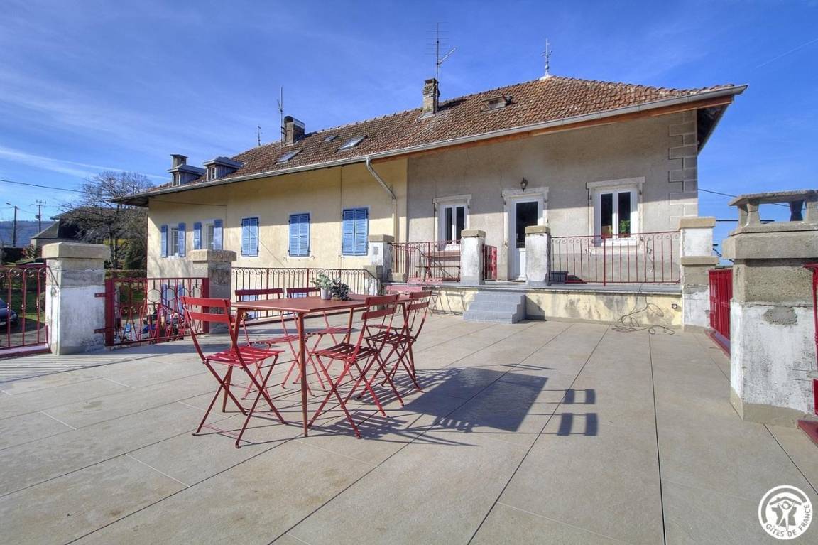 Bei Ihrer Ankunft stehen Ihnen zwei Eingänge zur Auswahl. Wenn Sie den kleinen Aufstieg wagen, können Sie die große, erhöhte Terrasse mit Panoramablick auf das Dorf und die umliegende Landschaft des Bugey genießen.