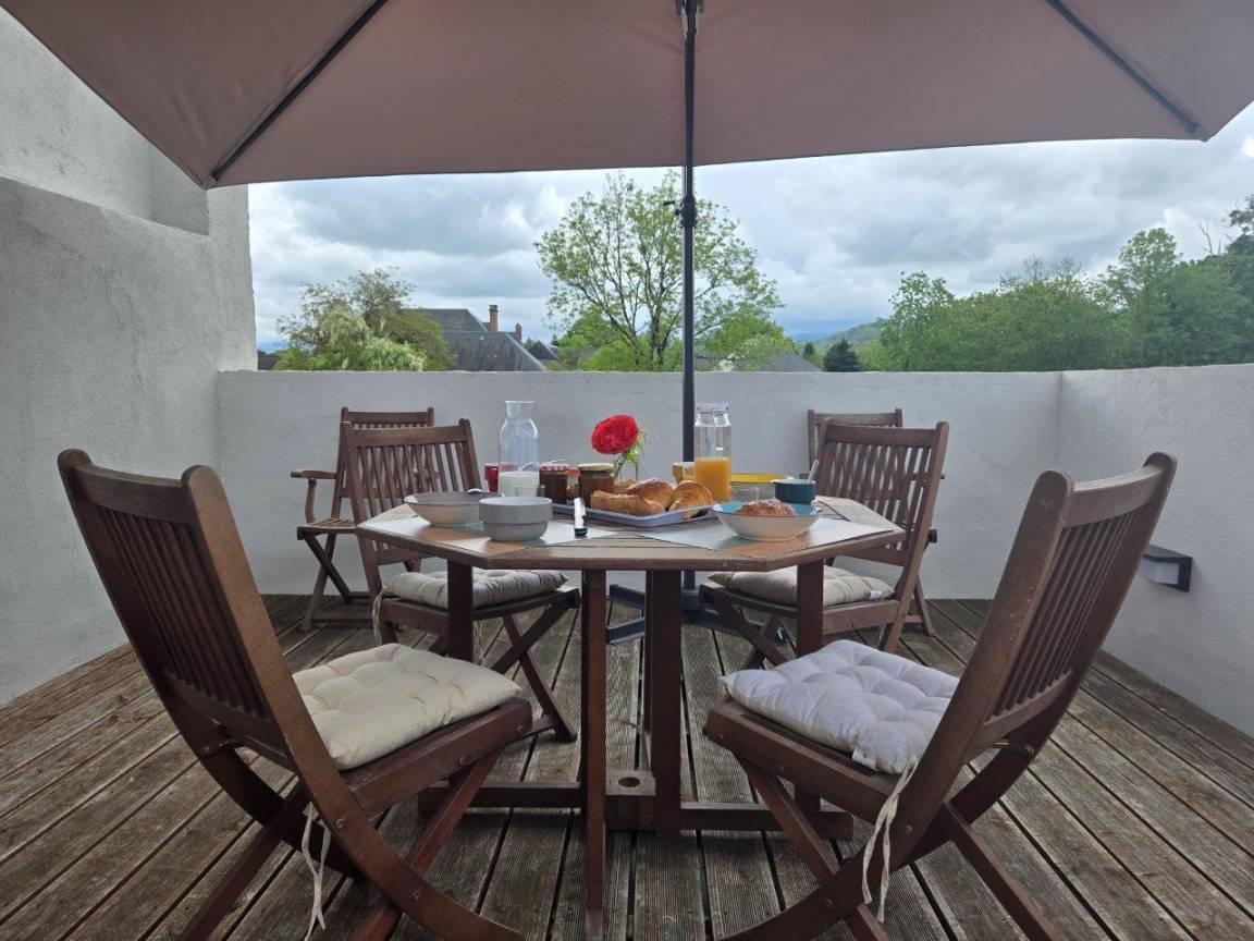„Très bonne semaine dans Le Clos Montaigu. Encore merci aux propriétaires pour leur accueil, le gîte est impeccable, très bien organisé avec vue sur montagnes.“