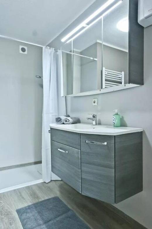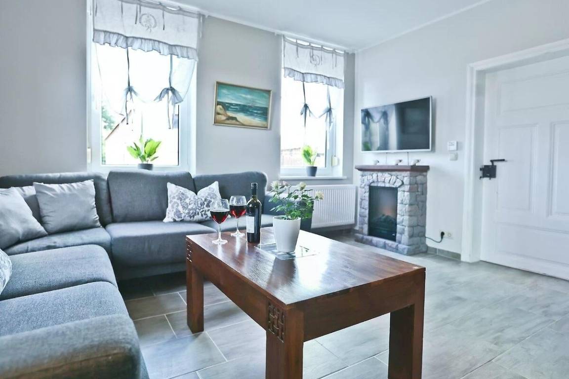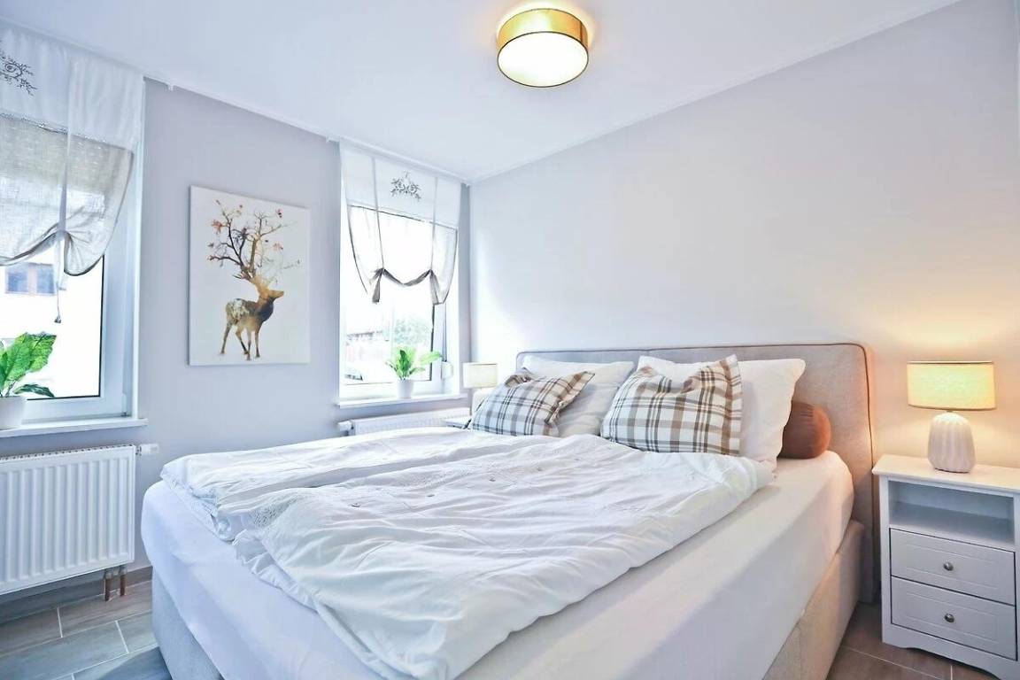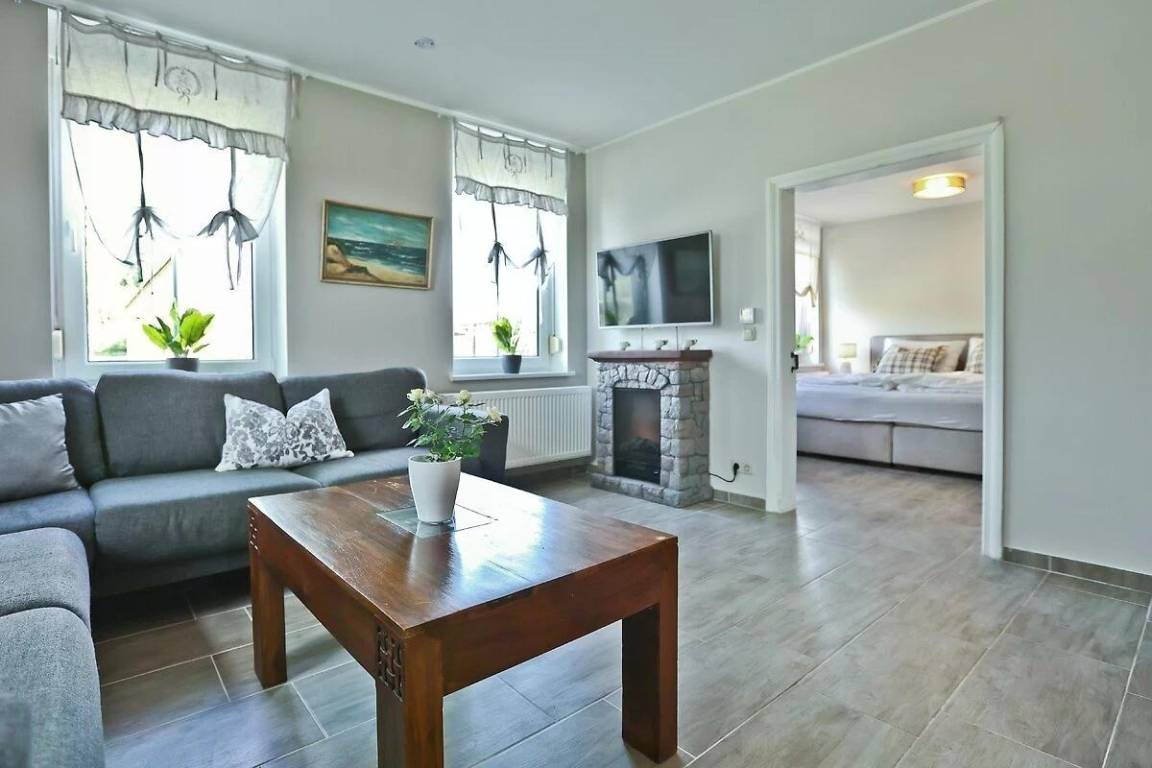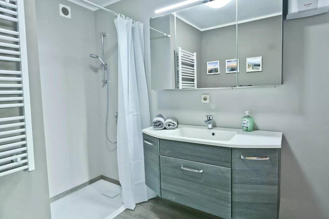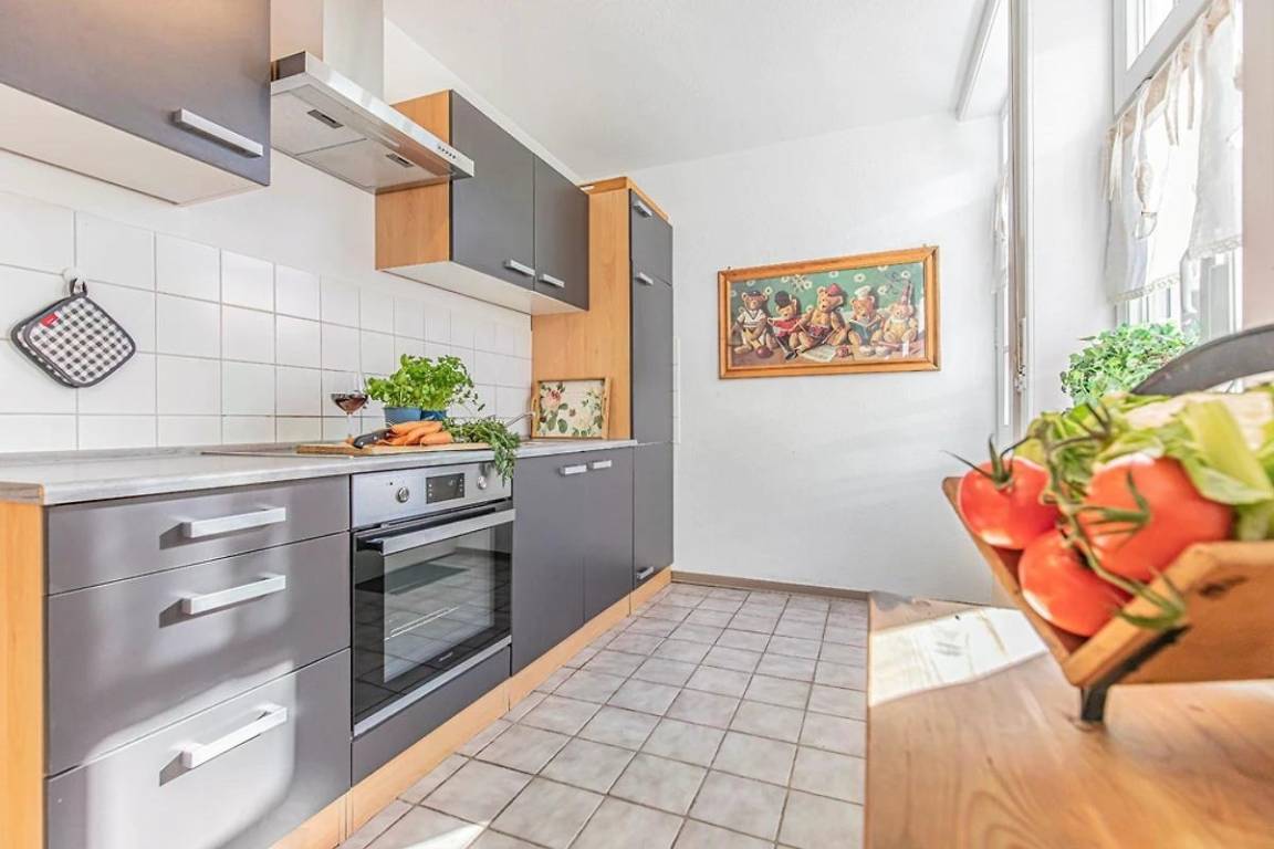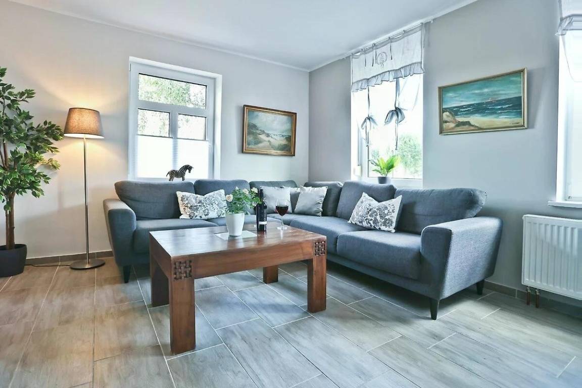 In der Wohnung "AusZeit" trifft Gemütlichkeit auf modernen Komfort: Auf 48 m² erwarten dich eine liebevoll eingerichtete Stube, ein Schlafzimmer mit begehbarem Kleiderschrank und ein stilvolles Bad. Die Küche mit Sitzecke rundet das kleine Refugium im Erdgeschoss ab.