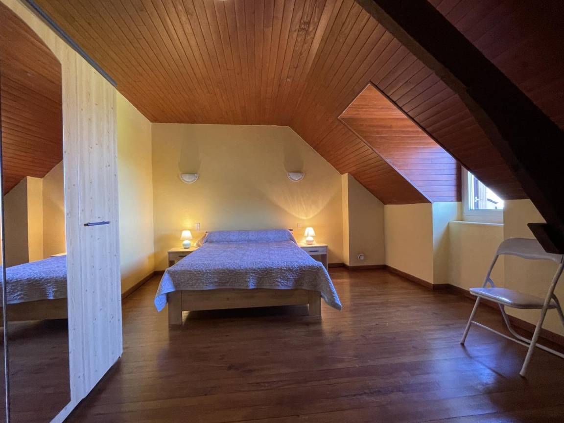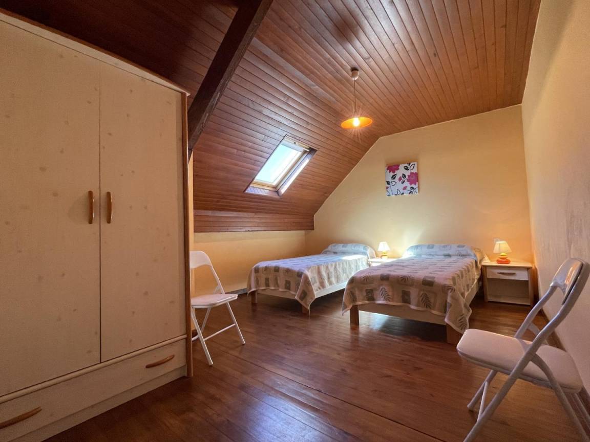 Obergeschoss: 2 Schlafzimmer (1 Doppelbett, 2 Einzelbetten). Möglichkeit, Bettwäsche zu mieten.