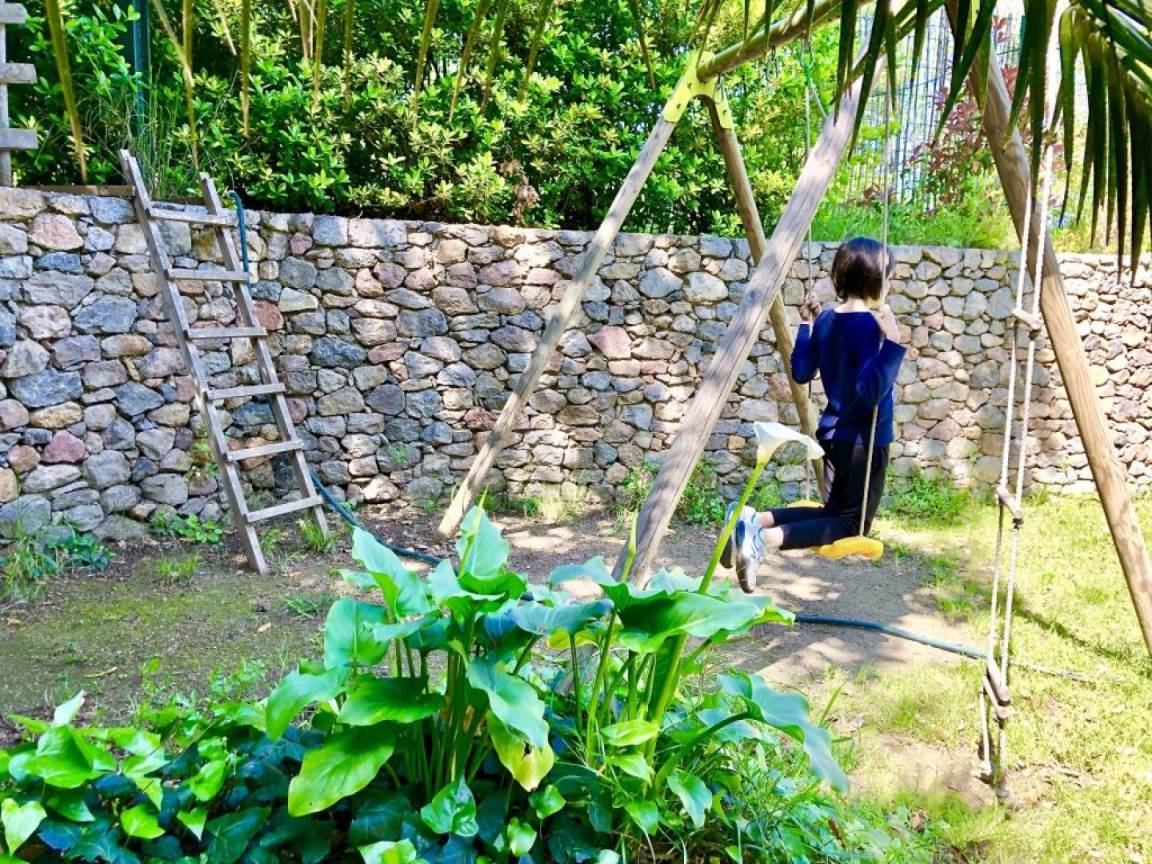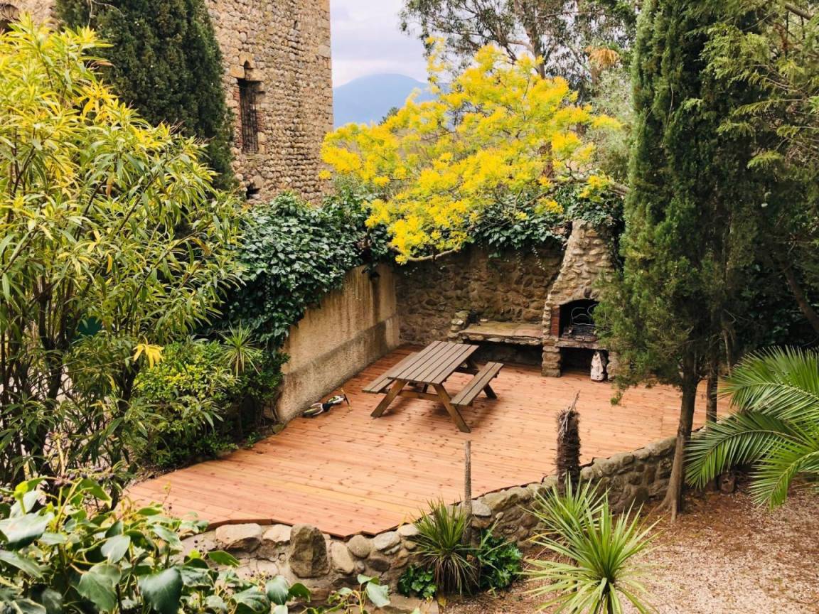 Das Ferienhaus El Canigo im ersten Stock ist klimatisiert und bestens ausgestattet. Es besteht aus einem Wohn-/Essbereich mit Küche, einem Schlafzimmer mit Doppelbett, einem kinderfreundlichen Zwischengeschoss (einfacher Zugang über die Treppe!) mit einem Doppelbett und einem Einzelbett sowie einem Duschbad. Die Terrasse unterhalb der Treppe mit Blick auf den Garten und den Turm lädt zum Verweilen mit Freunden und Familie am Steingrill ein – ideal, um köstliche regionale Produkte zu gen
