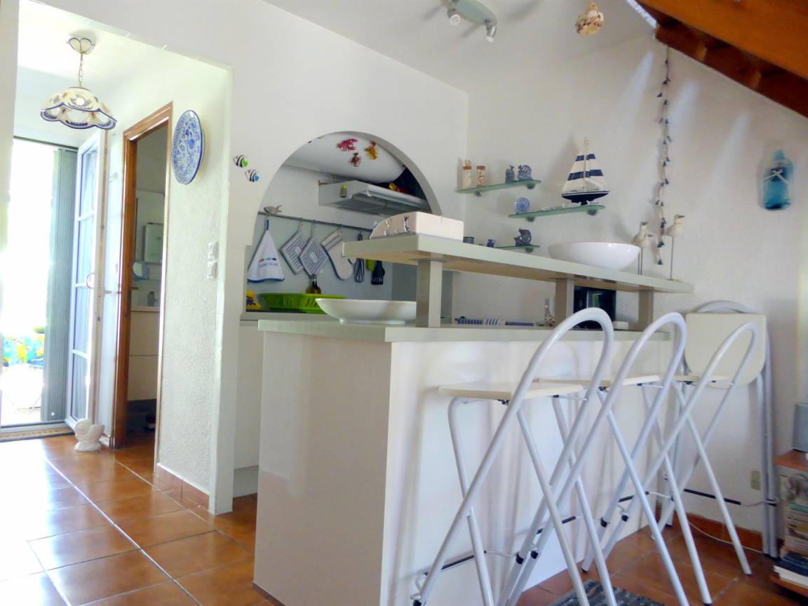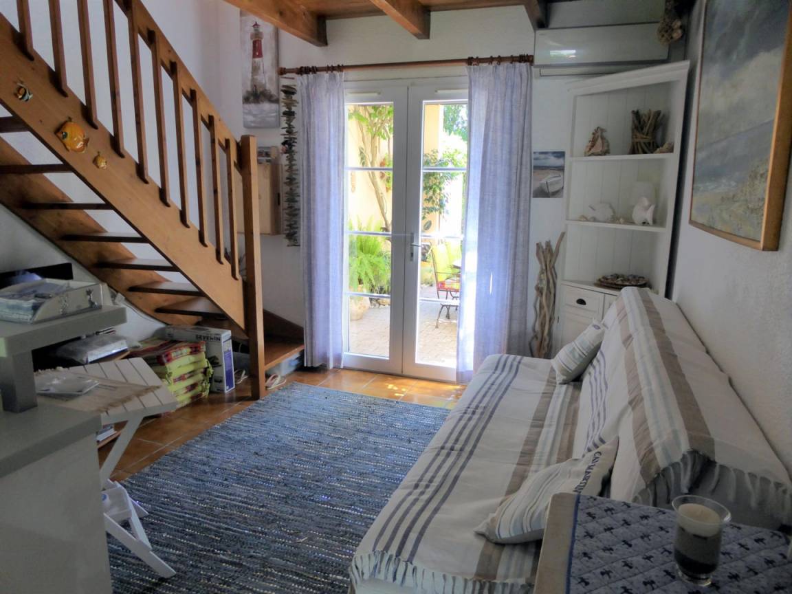 „The appartment had good quality furnishings and a reasonable kitchen. The owner was very welcoming. We really liked the oudoors space, terraces etc. It was an ideal property for the warmer summer months when you could be outside most of the time, but it was cramped when forced indoors all the time. The heating downstairs didn't work very well so at times we were quite cold. There was only a breakfast bar type arrangement with stools, for eating indoors, (we had to eat there most of the time as the weather wasn't great!). Also the sitting space was rather cramped. However, we did like the bedroom and mezzanine. The photos on the website made the apartment look much bigger than it was, so we felt that we paid a lot of money for the time of year that we went. We'd recommend the property for the summer months only.“