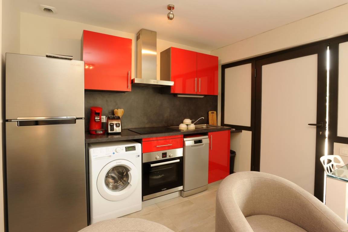 „Ce gîte est bien aménagé, confortable, assez bien équipé, sa petite terrasse est suffisante. Si l'appartement est entre deux autres locations, les brise-vue résolvent ce qui pourrait être une gêne. La route étant proche, les vitrages ont été conçus pour un bon confort accoustique. Seul bémol: La connexion wifi (il faudrait peut-être prévoir un amplificateur de réseau type Femtocell par Orange). La surface de ce gîte est parfaite pour un couple. Très bon séjour“