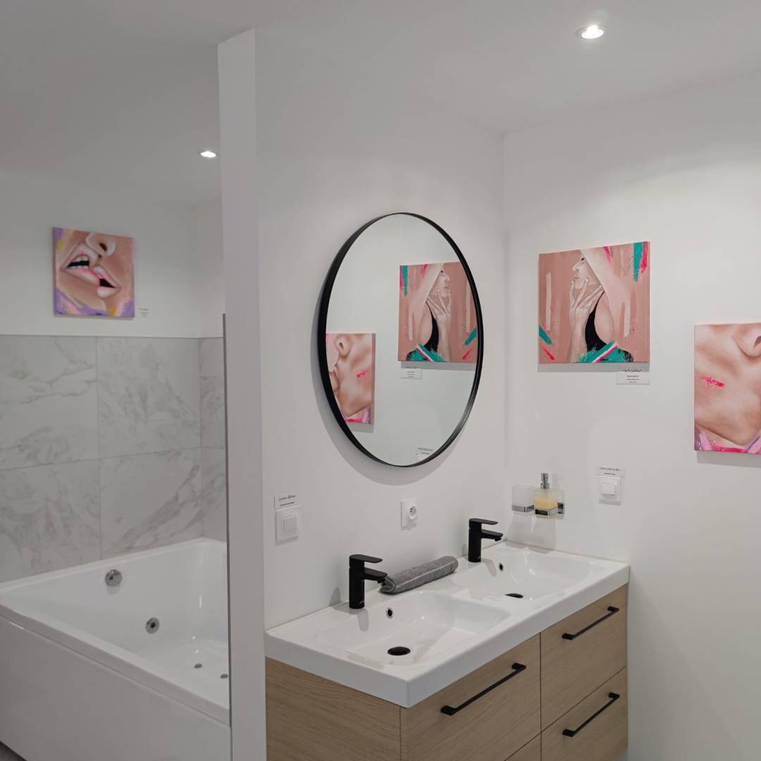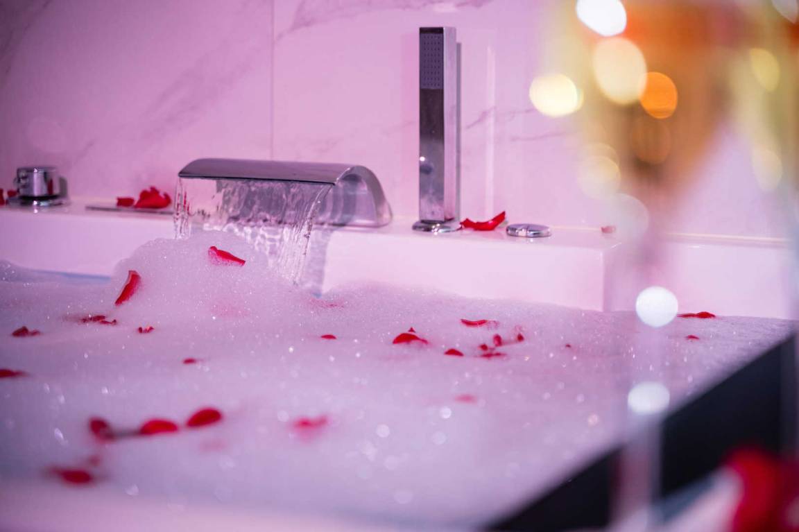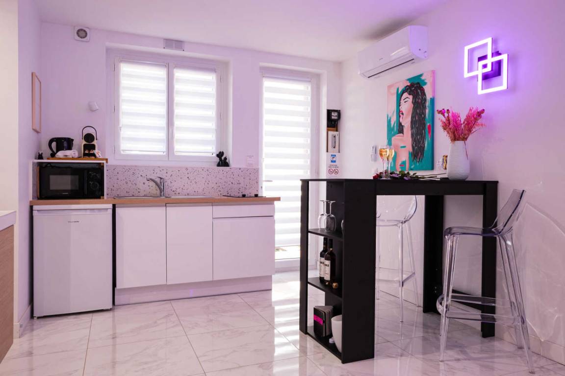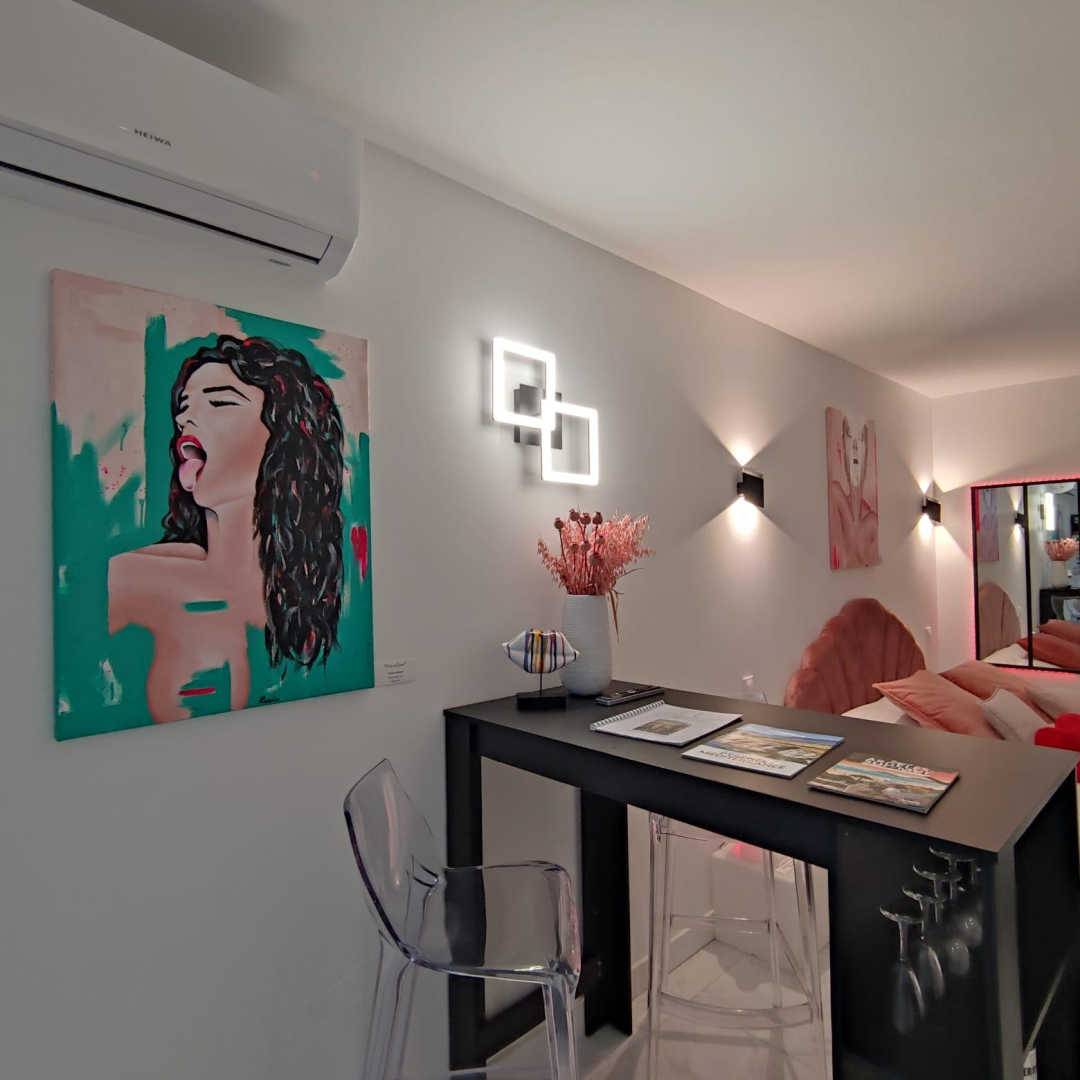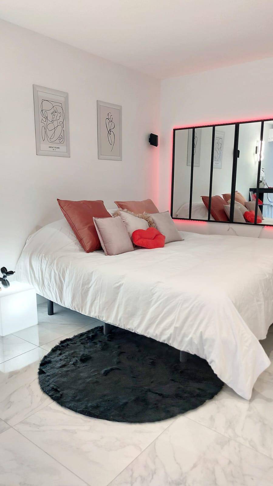 Im Erdgeschoss: Dieses charmante Studio-Apartment bietet eine Küche mit Wohnbereich (mit einem Kingsize-Bett), eine Whirlpool-Badewanne und ein Badezimmer (mit WC). Es öffnet sich zu einer privaten, 27 m² großen Terrasse mit Whirlpool.