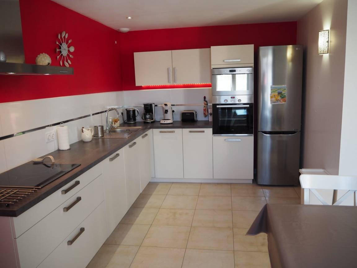 „Belle et grande maison pres de la mer. La cuisine ouverte est ideale pour cuisiner en famille. Lorsque le soleil brille sur le mur de la maison, c‘est le moment ideal pour prendre un cafe sur la terrasse.“