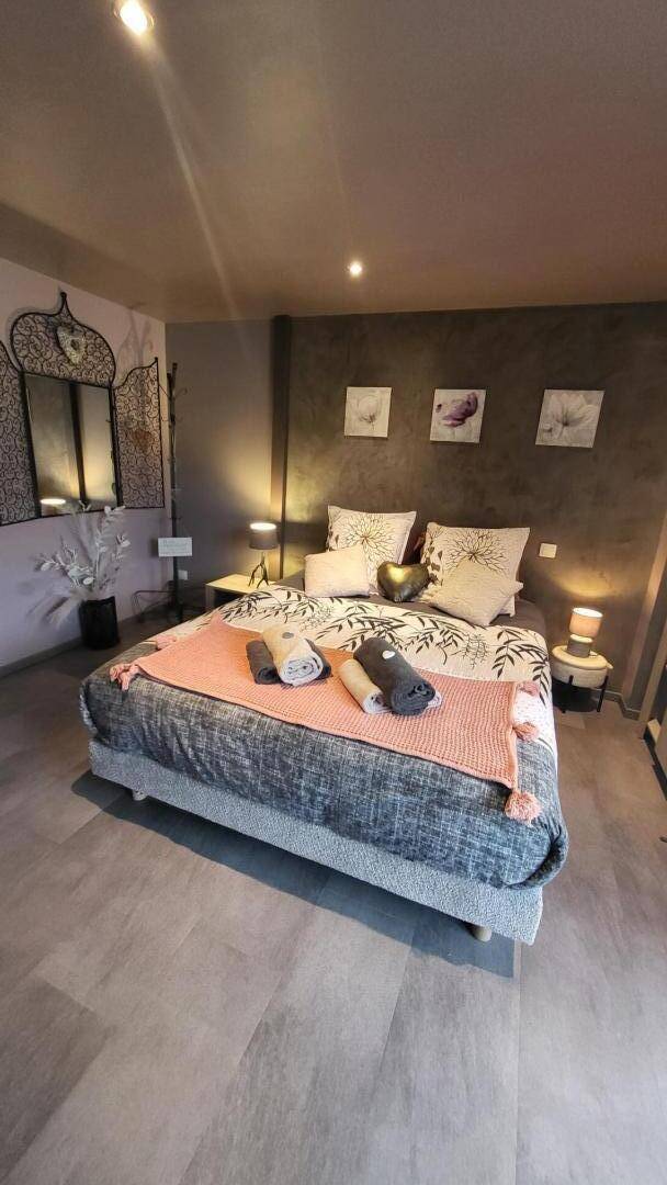 „Super séjour gite super bien placé si vous aimé la nature et le calme. gite plus que bien équipé et décoré avec goût. Rivière en bout de jardin belles baignades. je recommande sans problèmes. merci pour tout“