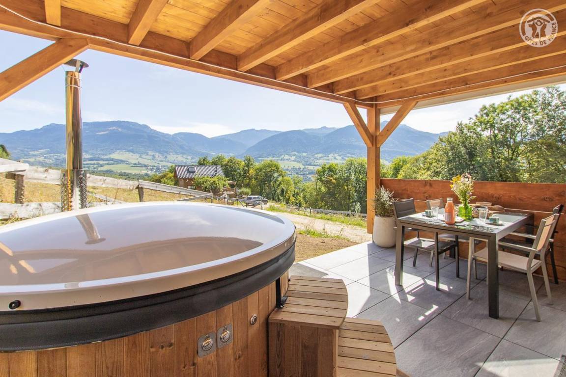 „Nous avons passé un superbe séjour très reposant chez Sophie et Eric qui nous ont très bien accueillis (merci pour le saucisson de pays) . Le chalet est très cosy et possède tout se qu'il faut pour passer un bon séjour. Une belle terrasse permet de prendre le soleil avec vues sur les bauges. Le bain norvégien chauffé au feu de bois assure la détente recherchée. Bref une très belle adresse à recommander.“