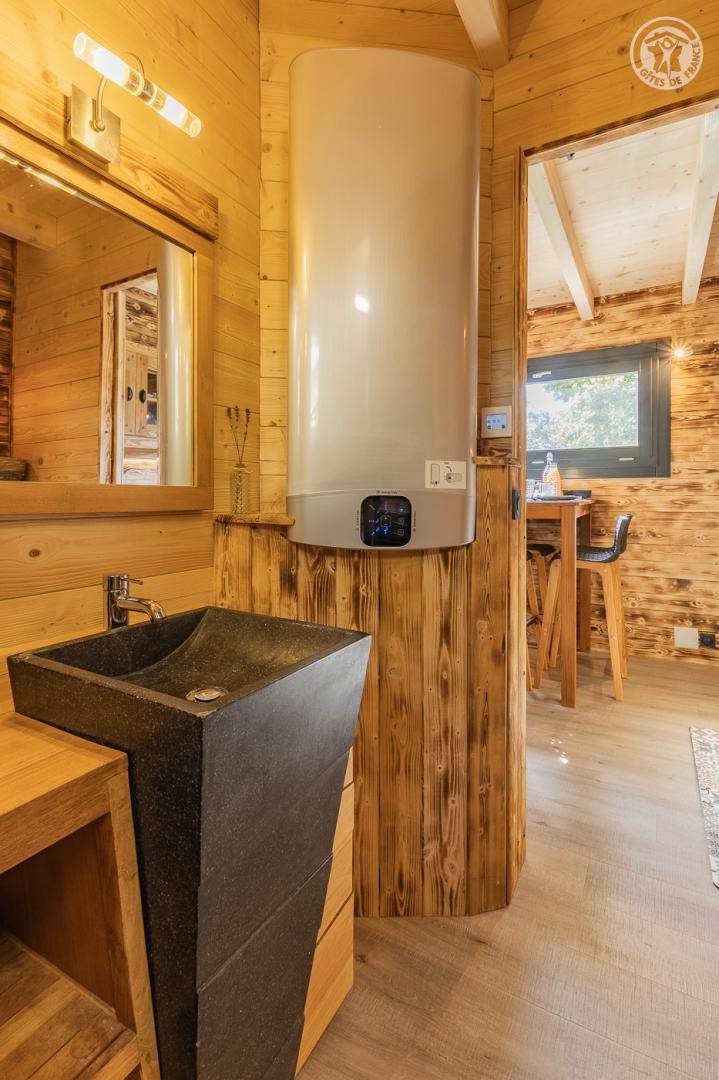„Séjour agréable mais en dessous de nos attentes vu le prix. Points forts: Chalet neuf/ bain norvégien/ jolie déco/ disponibilité des propriosPoints faibles: Lit et canapé peu confortable/ calme relatif par rapport à nos attentes (écho des bruits de la maison des proprios et de leurs hôtes) /vue sur un autre chalet/ pas de promenades intéressantes au départ du chalet/ chalet à l’ombre à partir de 16h“