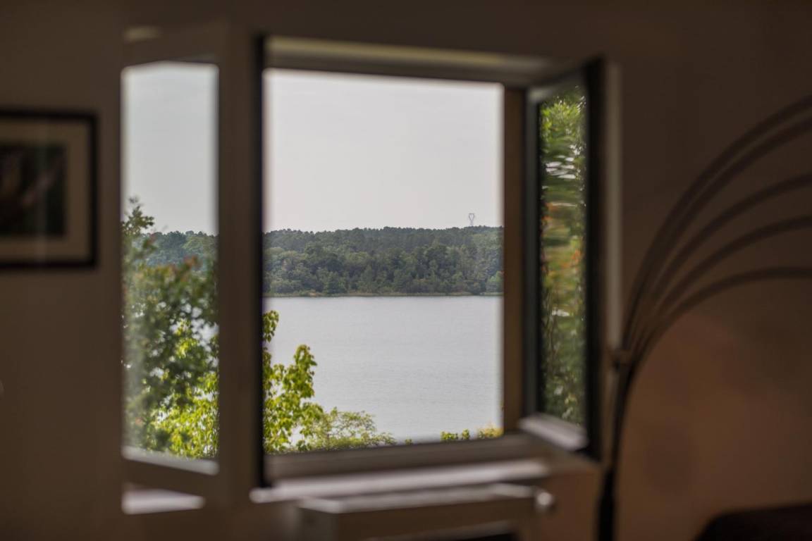Zugang über Außentreppe, Blick auf den See.