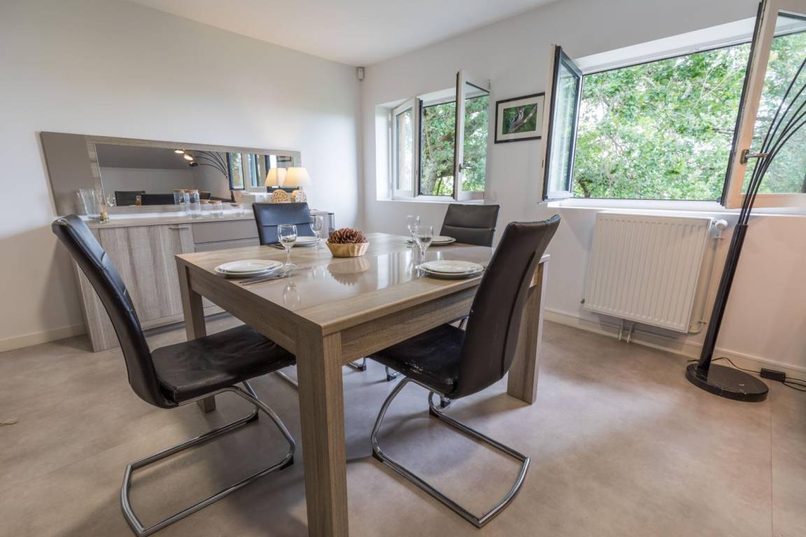 „Fait partie d'un ensemble de quelques gîtes isolés en pleine nature, bordé par un lac. C'est très beau et calme autour, le gîte est bien équipé, bonne literie, pas très grand mais très bien agencé (donc on "étouffe" pas du tout). Il manque les photos du jardin privatif sur l'annonce, qui existe bien, équipé d'une table en bois. L'équipe du syndicat gestionnaire est adorable. Quelques inconvénients potentiels en fonction de vos exigences: Voiture indispensable car aucun commerce à proximité immédiate (donc on oublie rien sur la liste de courses), wifi existant mais faible bande passante (donc on oublie le télétravail ou le film en HD sur Netflix). Pour notre part, tout cela ne nous a pas fait défaut et nous avons passé un excellent séjour. Merci !“