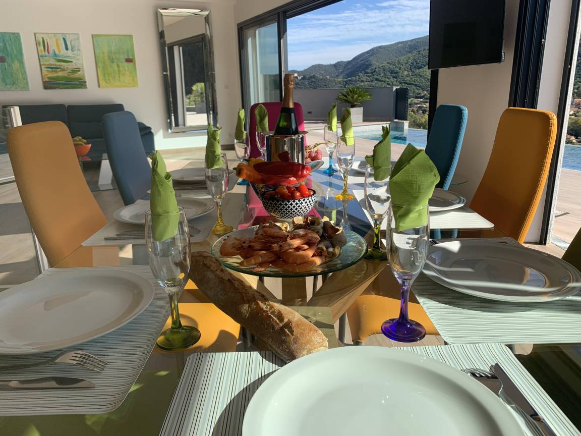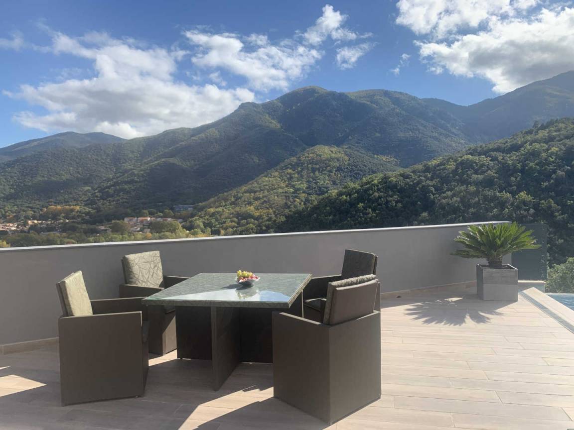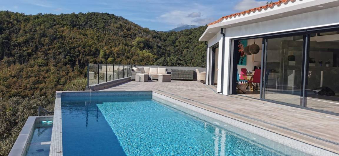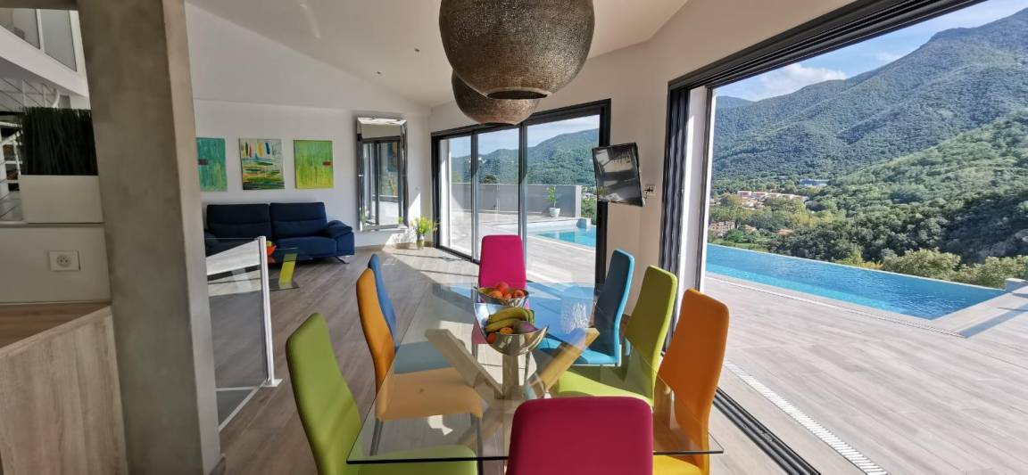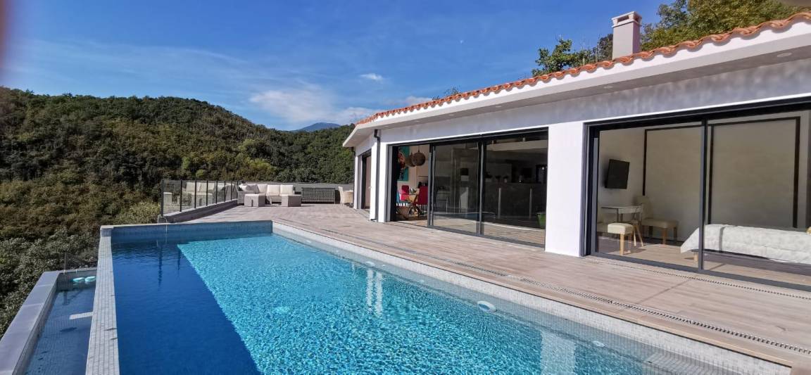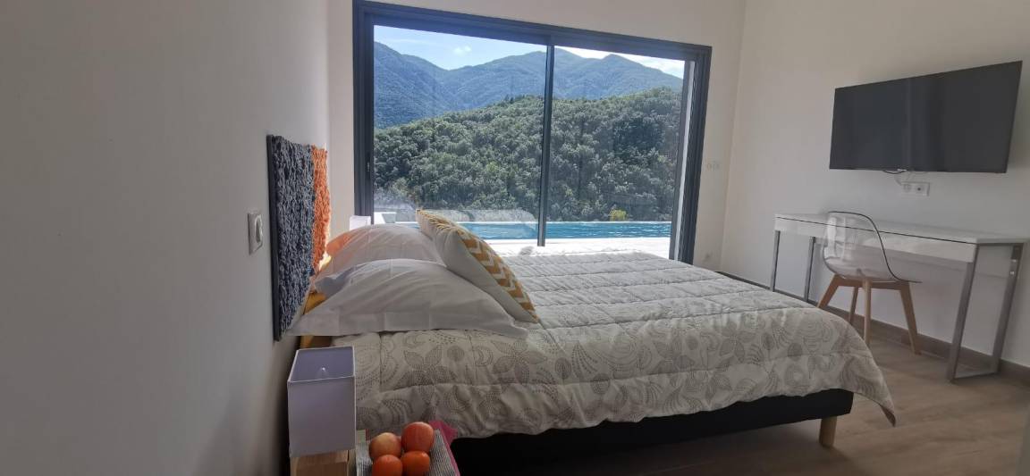 „Villa exceptionnelle dans un petit coin de paradisNous avons passé un excellent séjour dans cette villa à la vue magnifique. Grande maison récente de style moderne et très lumineuse, sans vis à vis. Confortable et bien équipée, tout confort avec la piscine à débordement sublime ! Un calme et une intimité fort appréciable. La villa est également très bien située, car nous venions pour nous reposer et randonner et nous avons pu alterner entre montagne, tourisme et bord de mer. Nous recommandons sans réserve. Nous remercions Elisabeth pour son accueil chaleureux et convivial. la maison de vacances dont nous rêvions, devenue réalité. Nous avons passé 2 semaines excellentes“