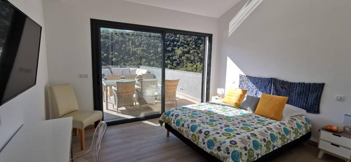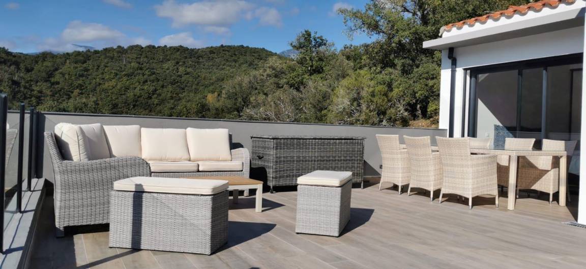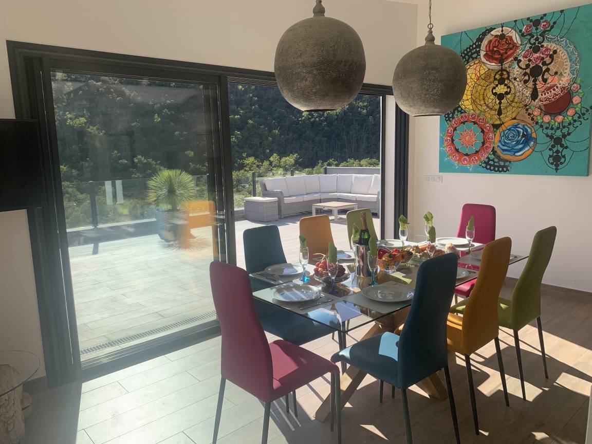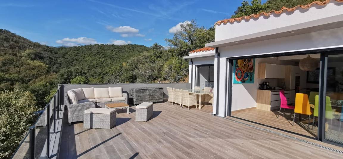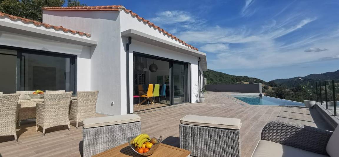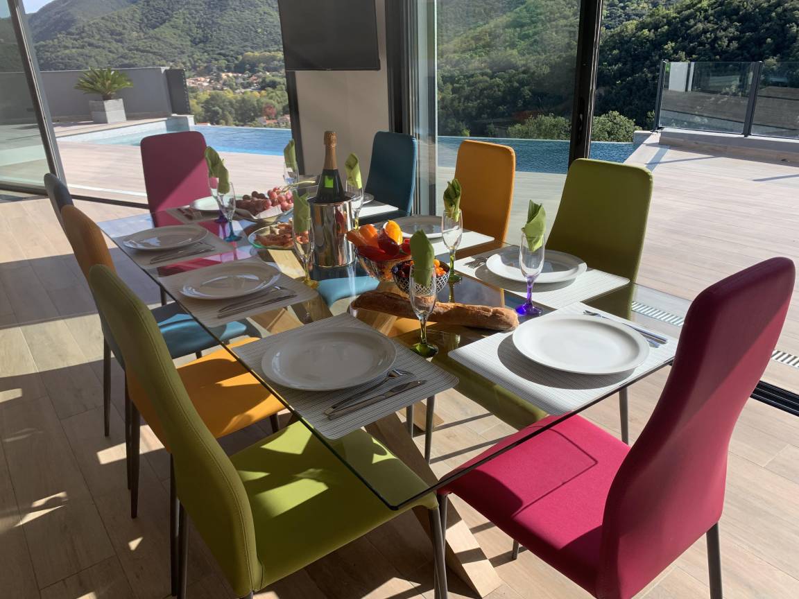 „Villa exceptionnelle dans un petit coin de paradisNous avons passé un excellent séjour dans cette villa à la vue magnifique. Grande maison récente de style moderne et très lumineuse, sans vis à vis. Confortable et bien équipée, tout confort avec la piscine à débordement sublime ! Un calme et une intimité fort appréciable. La villa est également très bien située, car nous venions pour nous reposer et randonner et nous avons pu alterner entre montagne, tourisme et bord de mer. Nous recommandons sans réserve. Nous remercions Elisabeth pour son accueil chaleureux et convivial. la maison de vacances dont nous rêvions, devenue réalité. Nous avons passé 2 semaines excellentes“