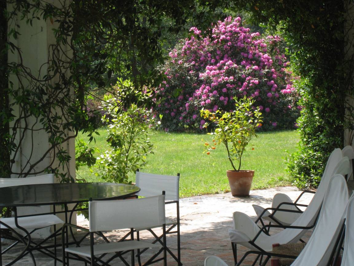 Wohnzimmer 1: zwei Sofas (Personen: 7), zwei Sessel, Schreibtisch, WiFi Internet, Ausgang auf den Garten, Ausgang auf die Veranda.