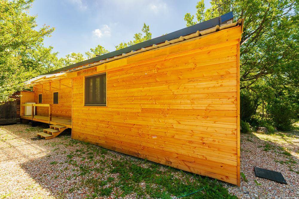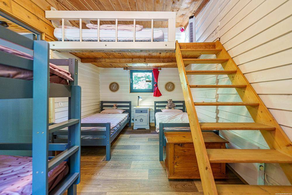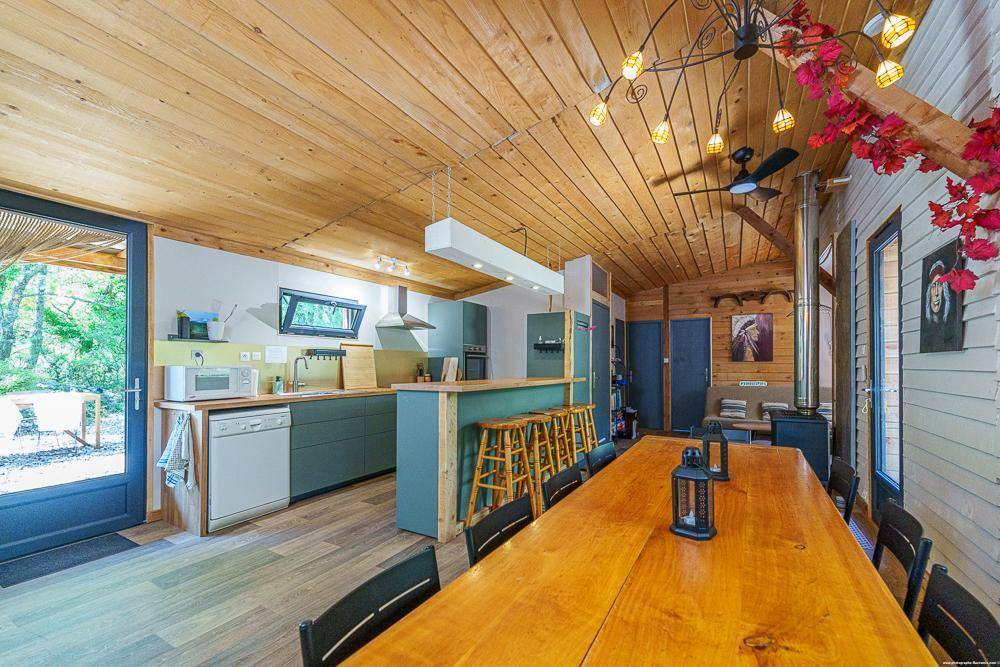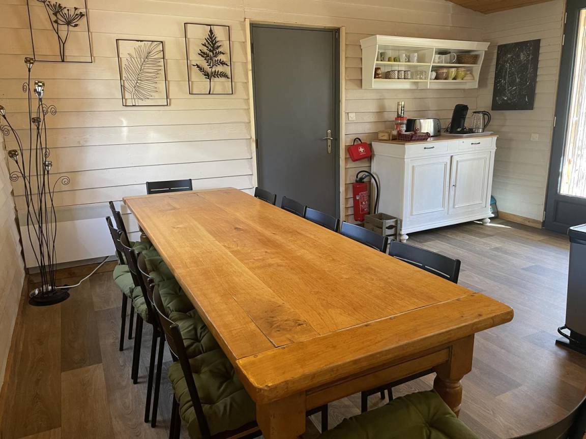 Mitten im Wald liegt die Gîte „le Ranch" auf dem Rocher Roux, einem 12 Hektar großen Grundstück, zu dem das Haus des Eigentümers und zwei weitere Chalets „Le Chalet Bleu" und „le Chalet Vert" gehören. Dieses 75 m² große Ferienhaus wurde im April 2023 perfekt renoviert und verfügt über: Eine ausgestattete Küche, die zum Esszimmer und zum Wohnzimmer hin offen ist, ein Schlafsofa, ein Badezimmer mit Dusche und Doppelwaschbecken, eine Toilette, zwei Schlafzimmer mit einem 140×200-Bett, ein Schlafsaal mit 6 Einzelbetten, davon 2 Etagenbetten und 2 im Zwischengeschoss. Es verfügt über eine schöne und große schattige Terrasse, die mit einer Plancha ausgestattet ist. Ein kleiner Weg führt zum Erfrischungsbecken.