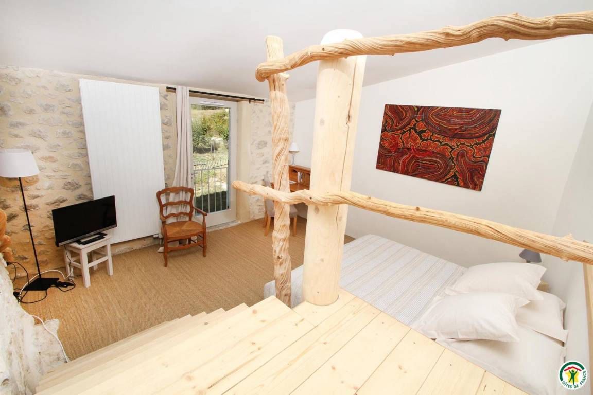 "Die Ferienunterkunft befindet sich im 1. Stock und grenzt an das Haus der Vermieter, mit separatem Eingang. Großer Aufenthaltsraum mit gut ausgestatteter Küche, 2 Schlafzimmer (1 Bett 160 cm), (2 Betten 90 cm oder 1 Bett 180 cm), Bad mit Dusche. 35 m² große Terrasse in Südlage mit Blick auf den Mont Ventoux. Gemeinschaftlich genutzter Swimmingpool (10 x 4,5 m) an der Ferienunterkunft "L'Ouest". 1 Babybett und 1 Hochstuhl können Ihnen zur Verfügung gestellt werden (auf Anfrage bei den Vermietern)."