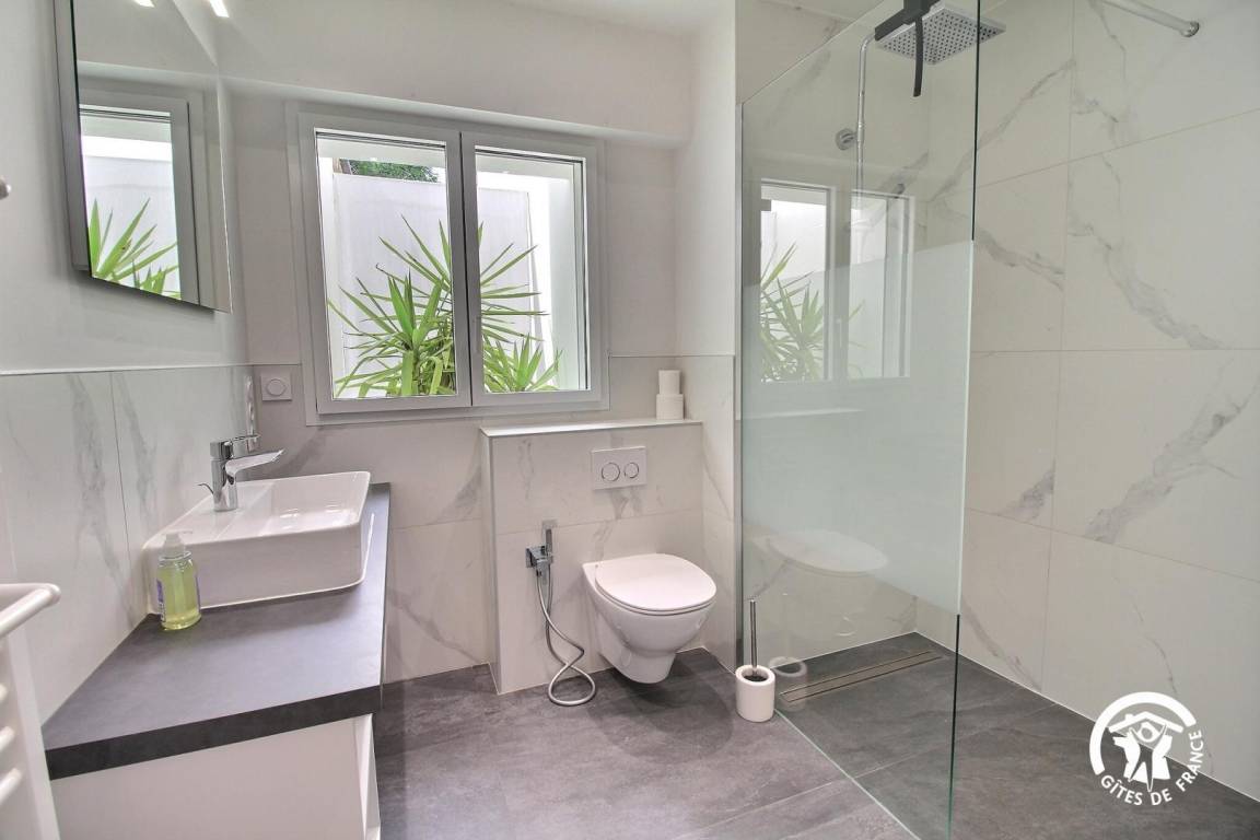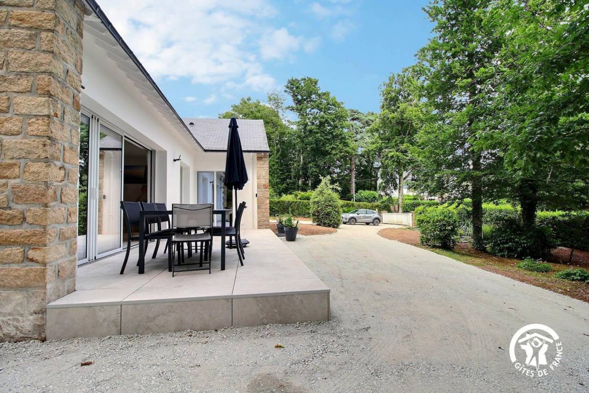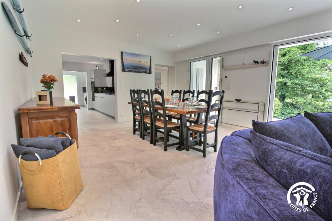 „Super emplacement dans zone privée et accès direct sur la mer. Jardin et aménagement extérieur très agréable. Maison fonctionnelle, partagée en 2, avec propriétaire dans l'autre partie (qui sait se faire très discret).“