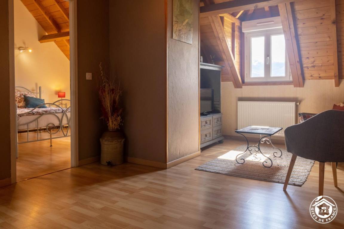 „Nous avons passé un excellent séjour dans ce gîte très spacieux et très confortable ! La vue sur la montagne et la vallée est magnifique et le grand balcon très agréable. La petite maison dans le jardin et les balançoires sont super pour les enfants. Merci à la propriétaire pour son accueil ! Tout était parfait !“