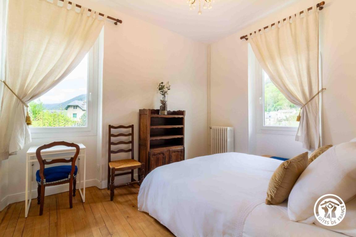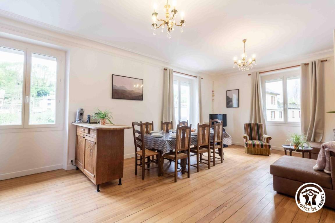 „Améliorations à apporter vis à vis du classement 2 épis: Table séjour plutôt pour 10 que pour 13, équipements table et sièges à l'extérieur pour 7 personnes, table et chaises rajoutées a notre demande par le propriétaire. Petit barbecue pour capacité logement. Pas de congélateur. 3 wc ok mais un sans lunette. Ménage fait par nos soins à notre départ. Linge trouvé par hasard sous un lit. Ustensiles cuisine un peu juste pour 13 (cocotte minute). Très bonne literie, chambres agréables dans l'ensemble. Ancien hôtel de la gare bien aménagé. A savoir: Proximité propriétaire présente. Spot intéressant pour randos.“