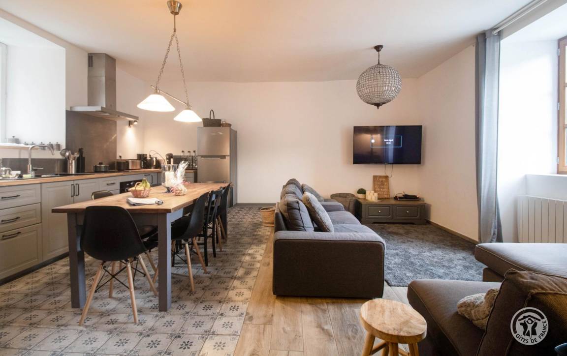 „Le logement est idéalement situé proche du centre et à 30 minutes de plusieurs stations de ski. Il est très bien équipé au niveau de la cuisine et pour les enfants (lit, chaise haute, jeux..) et spacieux donc idéal pour notre séjour entre amis avec 3 enfants. Seuls bémols, la télévision qui a un problème pour l'allumer et l'éteindre, le lave vaisselle qui a de faux contact au niveau des boutons et la propreté qui laisse à désirer.“