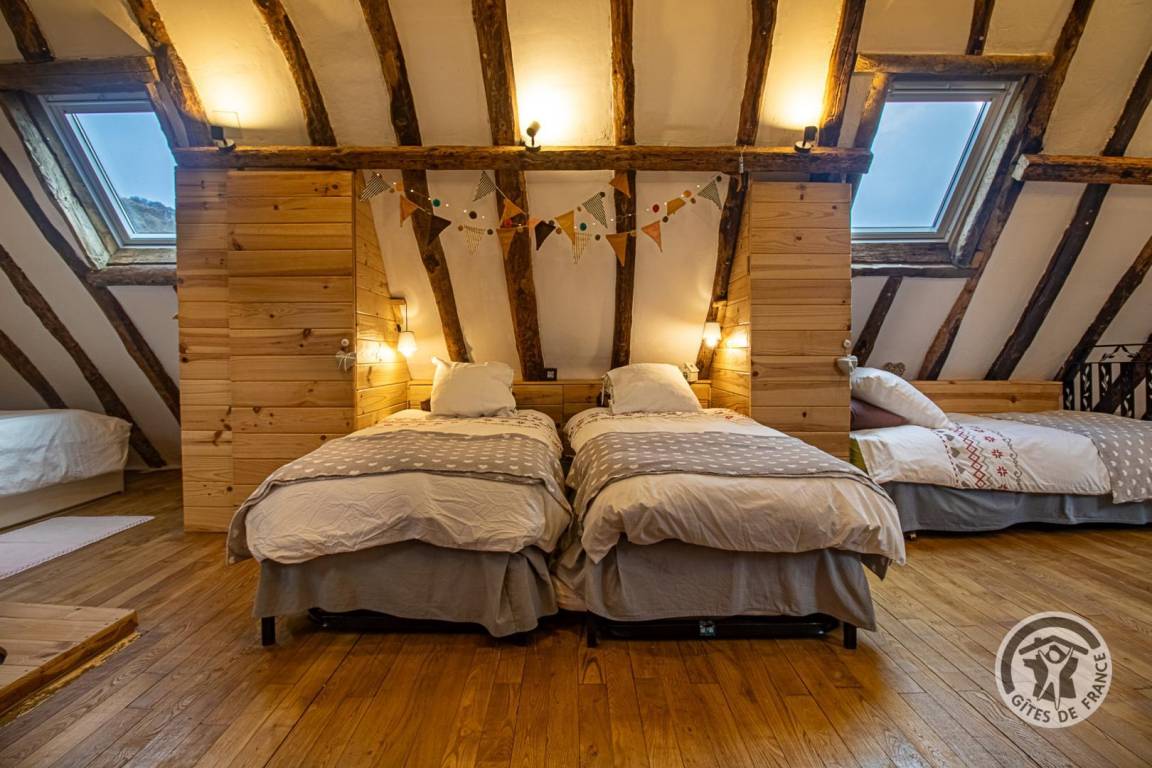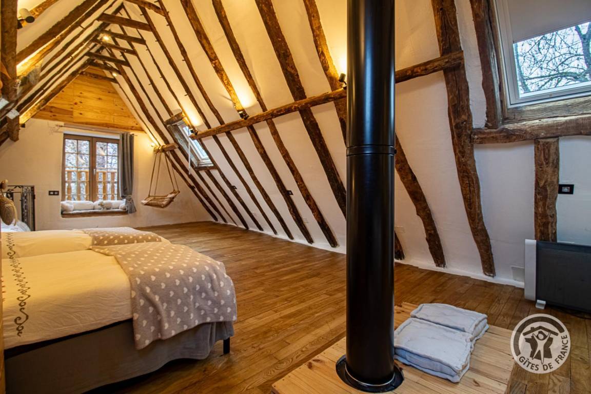 „Gite tres bien situé et confortable. La disposition des lits dans l unique chambre de l etage est a repenser pour eviter d avoir le côté du lit de 140 le long d un mur. Pensez a celui qui se leve la nuit...“