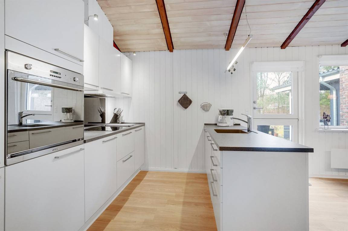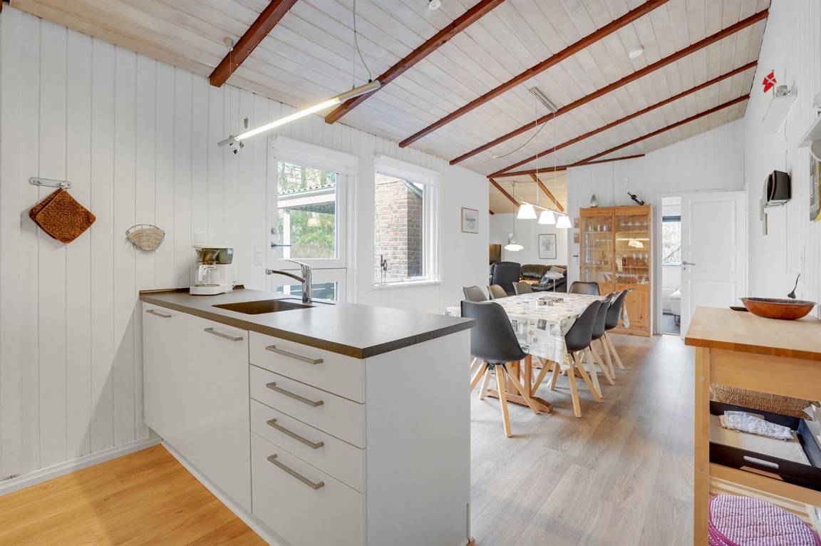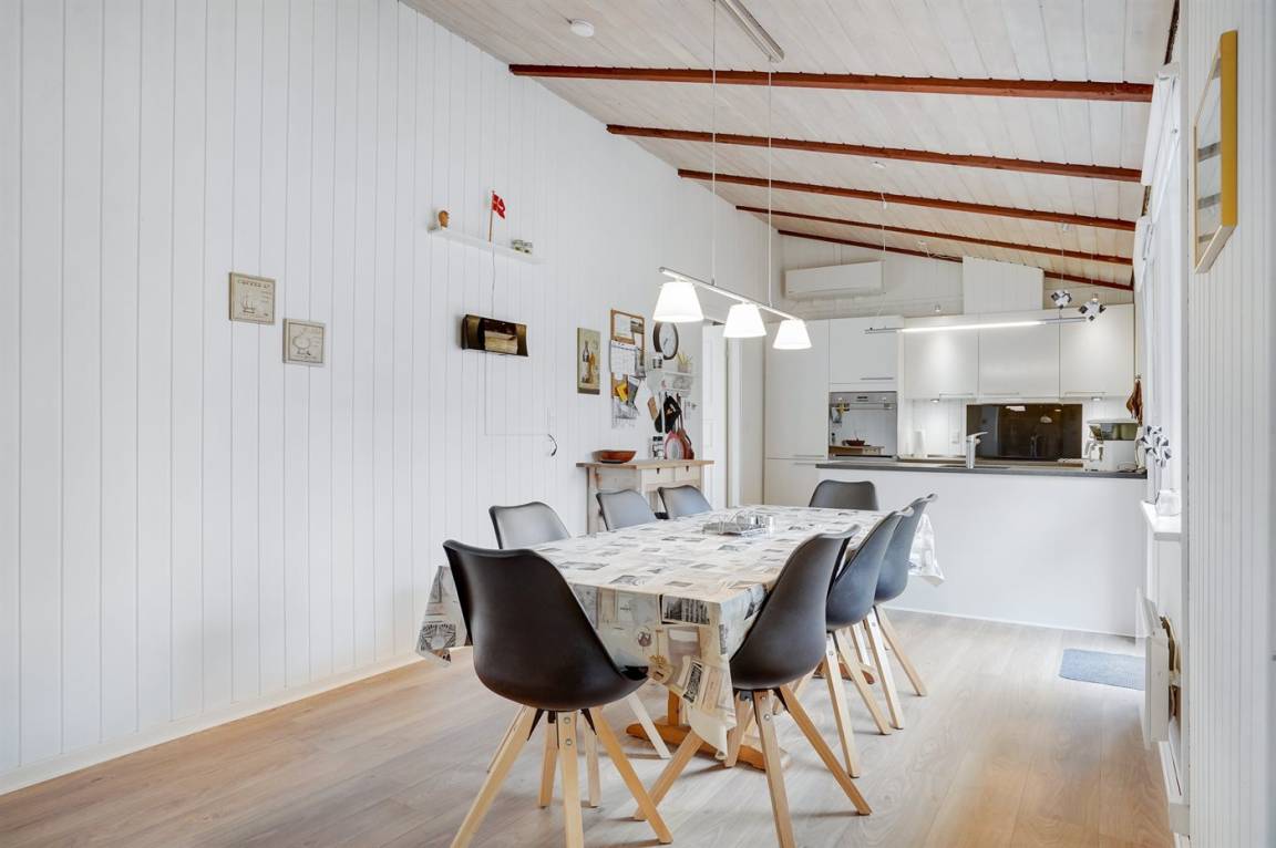 Ein geräumiges Ferienhaus mit praktischer Einrichtung und guten Möbeln. Das Haus liegt auf einem ungestörten Grundstück.