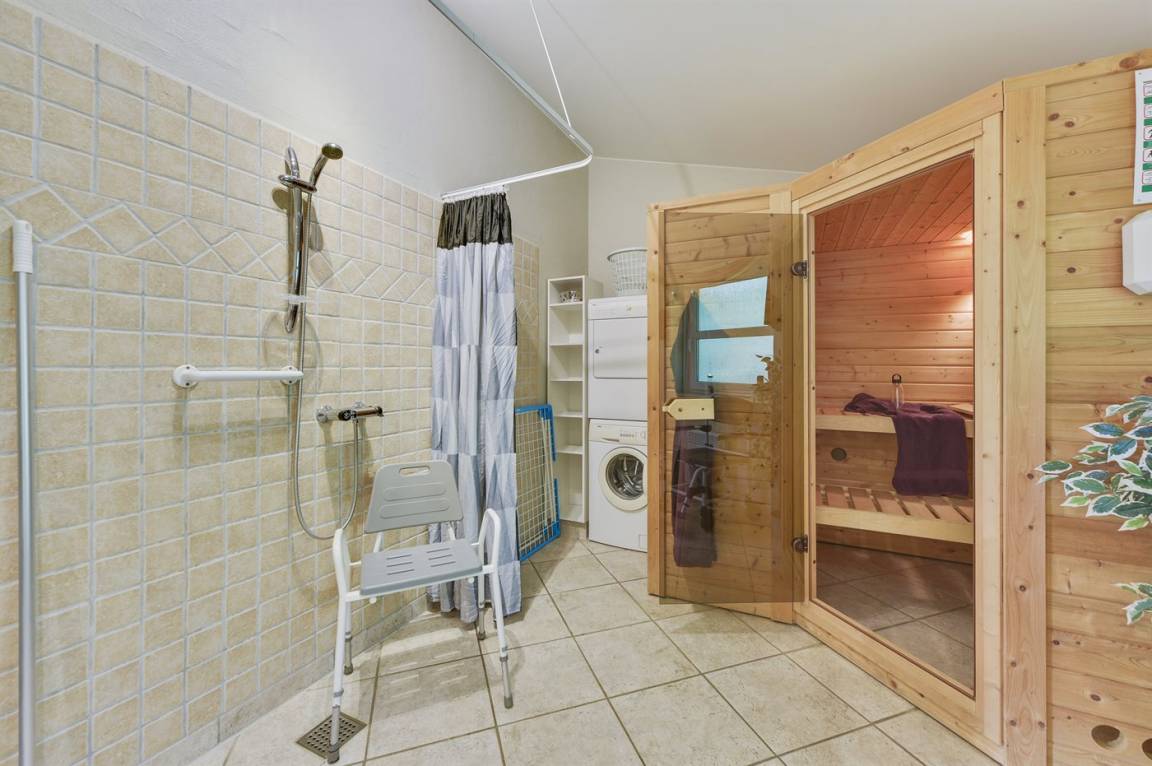 Schönes, behindertengerechtes Ferienhaus (Typ 1) aus Stein, 2004 gebaut und 2019 teilweise modernisiert, auf einem Gartengrundstück gelegen. Das Haus ist auf Grund der Kriterien des Dänischen Behindertenverbands ausgewählt und hat gute Eintritt- und Arbeitsverhältnisse für Rollstuhlfahrer und Personal sowie extra Türbreite zu den Zimmern und zum Badezimmer. KONTAKTIEREN SIE DAS ÖRTLICHE SERVICEBÜRO BEI BEDARF AN HILFSMITTELN. Großes, offenes und überdachtes Terrassenareal. Beheizbarer Fußböden im Badezimmer, Wohnzimmer und in der Küche. Schönes, großes Badezimmer mit Duschnische, Duschbank und Zuritt zur Sauna. Zusätzliches Badezimmer mit Duschnische. Die Küche ist mit dem Wohnzimmer kombiniert und enthält Herd mit Ceran-Feld, Umluftofen, Mikrowelle, Tiefkühlgerät und Geschirrspüler. Gemütlich möbliertes Wohnzimmer mit TV mit Gemeinschaftsantenne, Stereoanlage und Kaminofen. Ferner kostenlose, kabellose Internetverbindung vorhanden (Computer ist mitzubringen). Die Schlafplätze verteilen sich auf 4 Schlafzimmer; 2 mit Doppelbett und 2 mit je 2 Einzelbetten. Ferner 2 Schlafplätze im offenen Obergeschoss des Hauses. Für die jüngsten Feriengäste ist eine Schaukel vorhanden. Es ist eine energiesparende Wärmepumpe installiert. Ein gutes Ferienhaus das ganze Jahr. Im Gebiet gibt es u. a. Put & Take See und mehrere Golfplätze. Arrild Ferieby ist ein Naturgebiet mit 450 Ferienhäusern, Schwimmhalle und Restaurants.
