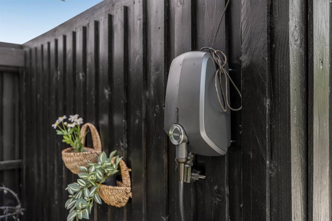 DraußenDie Ferienunterkunft liegt auf einem 875 m² großen Naturgrundstück. Das Grundstück ist eingezäunt. Die Entfernung zum Meer beträgt 30000 m.Die Entfernung zum Wattenmeer beträgt 20000 m. Die Entfernung zu einem See beträgt 900 m. Die nächste Einkaufsmöglichkeit liegt 1000 m entfernt. Es steht ein offenes Terrassenareal zur Verfügung. Außerdem gibt es überdachte Terrasse. Geräteraum. Schaukel. Die Entfernung zu einem Spielplatz beträgt 900 m. Es steht ein Grill zur Verfügung. Es ist ein Ladestecker für Elektroautos installiert. Ladestecker Typ 2. Parkplatz auf dem Grundstück.